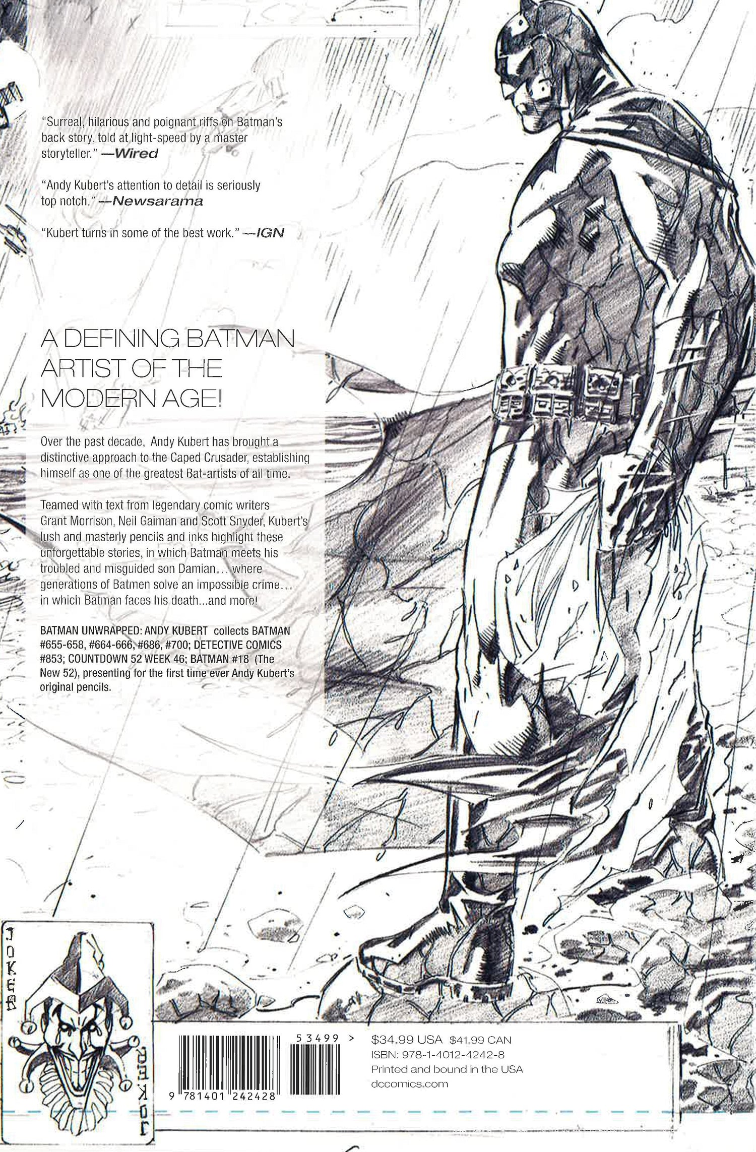 DC collects the Batman stories by Andy Kubert, the acclaimed comics artist whose work includes Before Watchmen: Night Owl, Flashpoint, and much more, in pencil form in this new hardcover. With stories written by #1 New York Times bestselling authors Neil Gaiman and Grant Morrison, these tales introduced Damian Wayne, son of Bruce Wayne, who becomes the new Robin. Also included is the now classic story "Whatever Happened to the Caped Crusader?" These stories gain a new depth when seen in pencil form, as Andy Kubert's spectacular artwork in crisp, pencil form for the very first time.