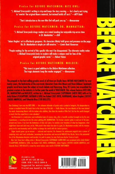 The controversial, long-awaited prequels to the best-selling graphic novel of all-time are finally here: BEFORE WATCHMEN! For over twenty years, the back stories of the now iconic characters from Alan Moore and Dave Gibbon's landmark graphic novel have remained a mystery - until now! Discover what happened before Watchmen as writer J. Michael Straczynski is joined by Andy Kubert and the legendary Joe Kubert to take flight with the gadget-savvy vigilante known as Nite Owl! And, in Before Watchmen: Dr. Manhattan, JMS teams with fan-favorite artist Adam Hughes on the all-powerful super-man Dr. Manhattan. For Dr. Manhattan, past, present, and future are one and the same. But as he observes the events of his life, do they remain the same? Or are they changed?