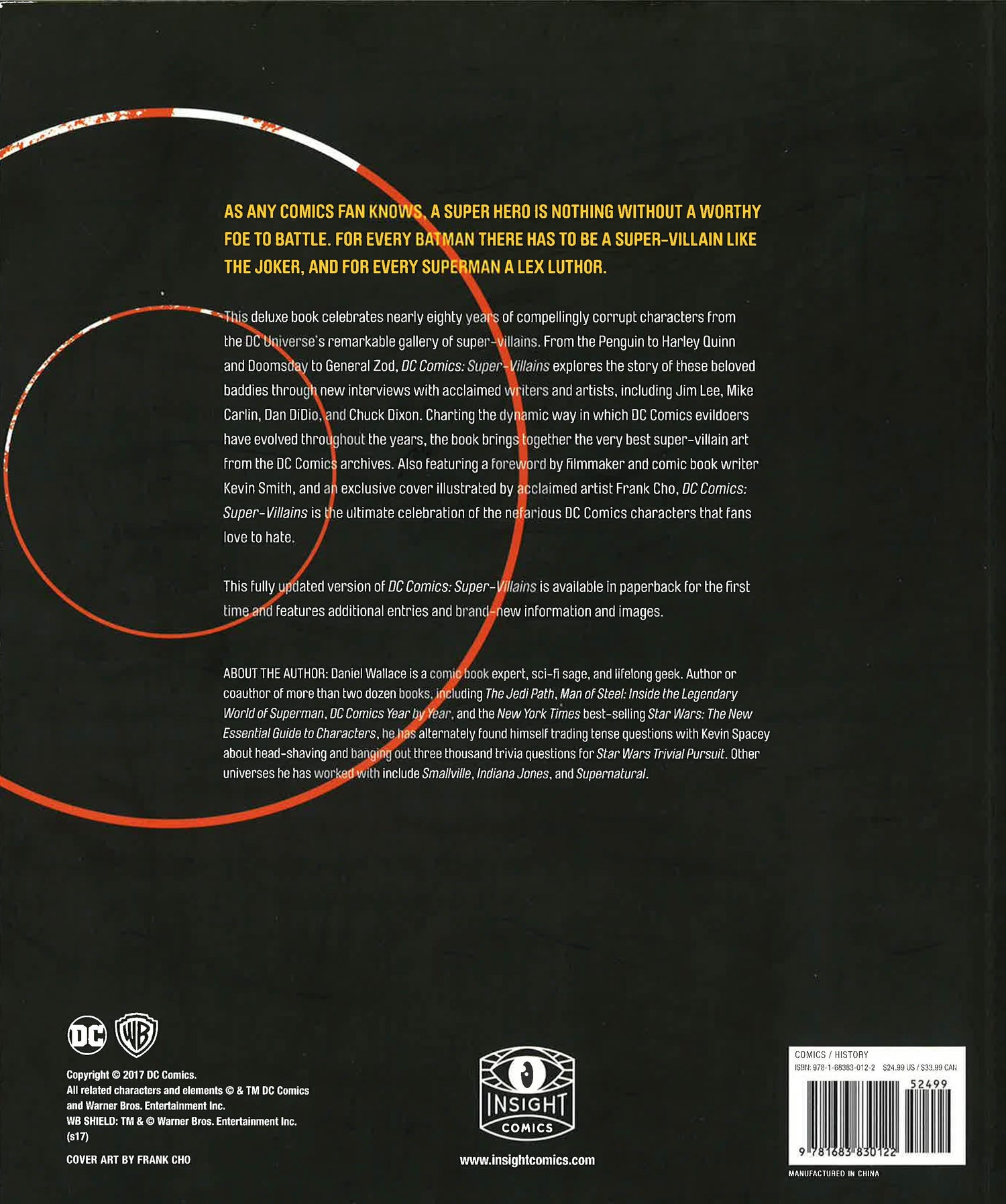 Discover the origins, secrets, and nefarious schemes of the most powerful and corrupt villains in the DC Universe in this lavishly illustrated visual history, now available in paperback for the first time. As any comics fan knows, a Super Hero is nothing without a worthy foe to battle. For every Batman there has to be a super-villain like the Joker, and for every Superman a Lex Luthor. This deluxe book celebrates nearly eighty years of compellingly corrupt characters from the DC Universe's remarkable gallery of super-villains. From the Penguin to Harley Quinn and Doomsday to General Zod, DC Comics: Super-Villains explores the story of these beloved baddies through new interviews with acclaimed writers and artists, including Jim Lee, Mike Carlin, Dan DiDio, and Chuck Dixon. Charting the dynamic way in which DC Comics evildoers have evolved throughout the years, the book brings together the very best super-villain art from the DC Comics archives. Also featuring a foreword by filmmaker and comic book writer Kevin Smith, and an exclusive cover illustrated by acclaimed artist Frank Cho, DC Comics: Super-Villains is the ultimate celebration of the nefarious DC Comics characters that fans love to hate. DC Comics: Super-Villains is now available in paperback.