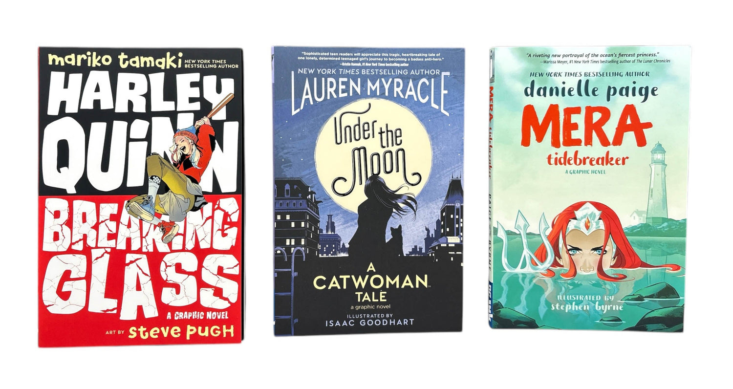 Mera: Tidebreaker explores duty, love, heroism, and freedom through the eyes of undersea royalty. Under the Moon: A Catwoman Tale explores the storey of a teenage Catwoman, as she struggles to find her own identity while living on the streens of Gotham. Eisner award-winning graphic novel, Harley Quinn: Breaking Glass is a tale about choicess, consequences, and how a 15-year old Harleen Quinzel defines her world for herself.