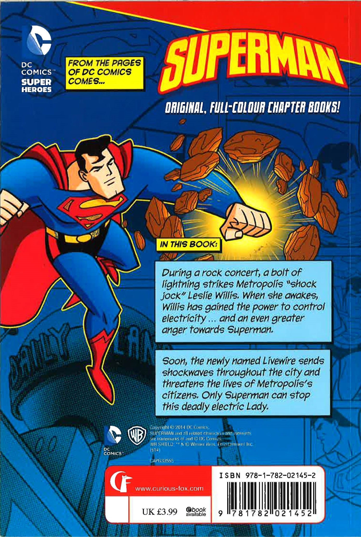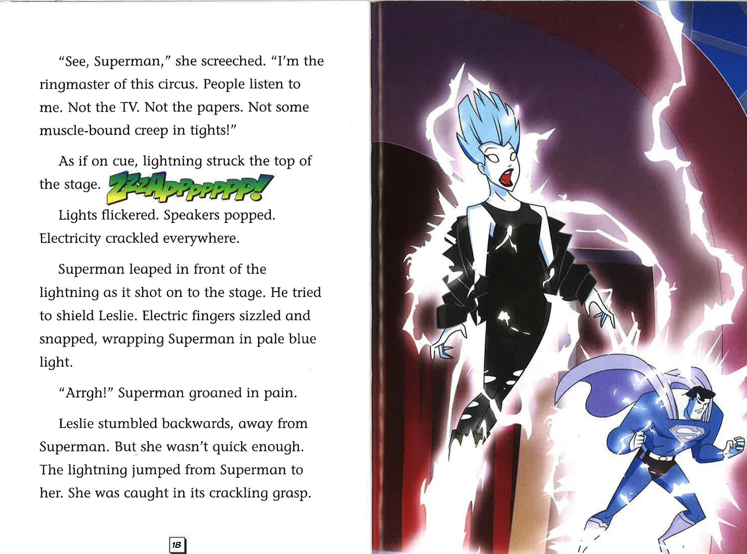 During a party in the Metropolis Centennial Park, a bolt of lightning strikes radio "shock jock" Leslie Willis. When she awakes, Willis has gained the power to control electricity . . . and gained an even greater hated of Superman. Soon, the newly named Livewire sends shockwaves throughout the city and threatens the lives of Metropolis's citizens. Only Superman can stop this deadly electric lady.