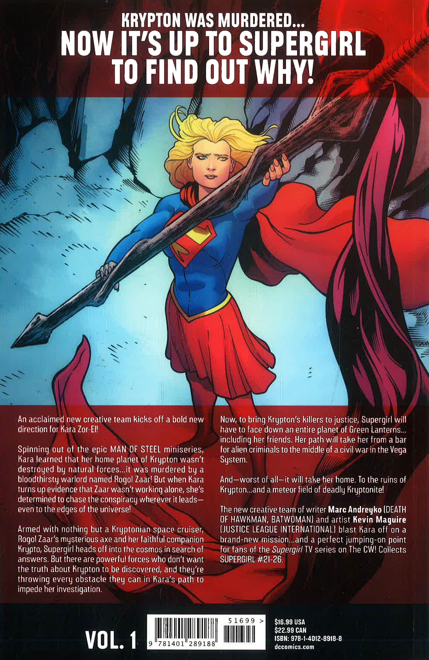 Spinning out of the epic Man of Steel miniseries, Kara Zor-El learned that her home planet of Krypton wasn't destroyed by natural forces...it was murdered by a bloodthirsty warlord named Rogol Zaar! But when Kara turns up evidence that Zaar wasn't working alone, she's determined to chase the conspiracy wherever it leads--even to the edges of the universe!
