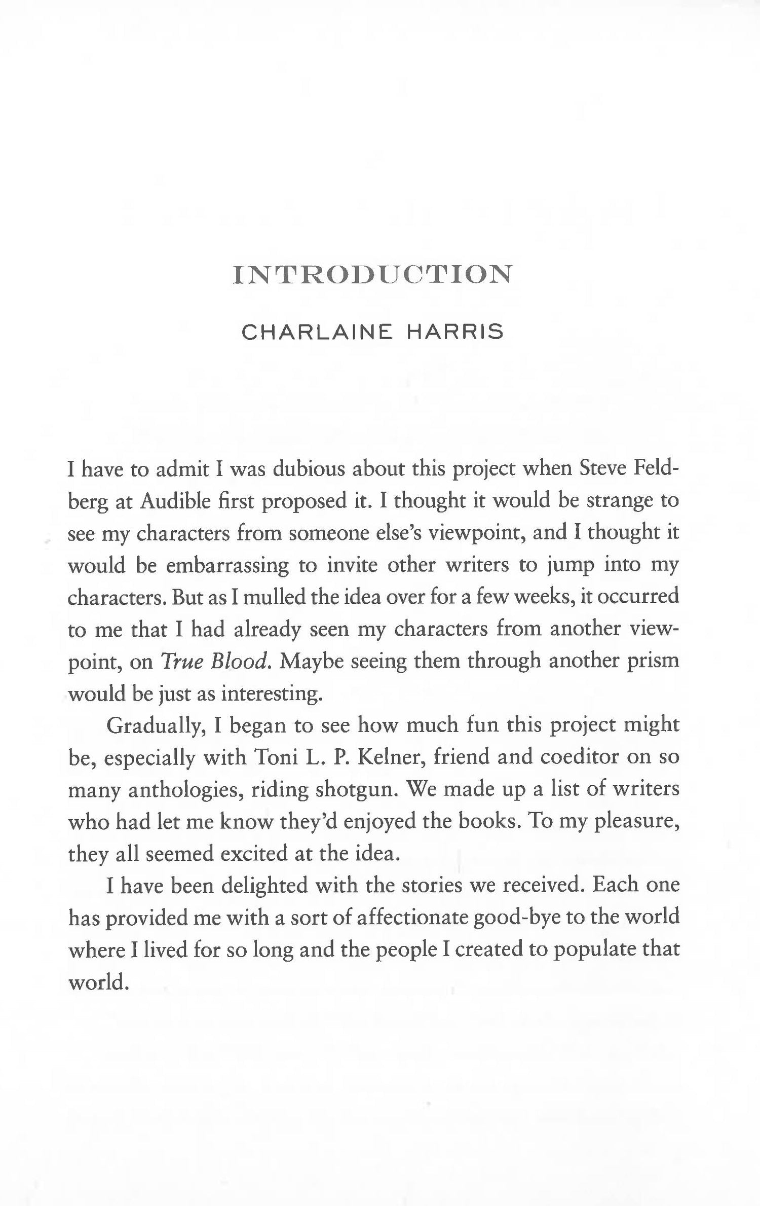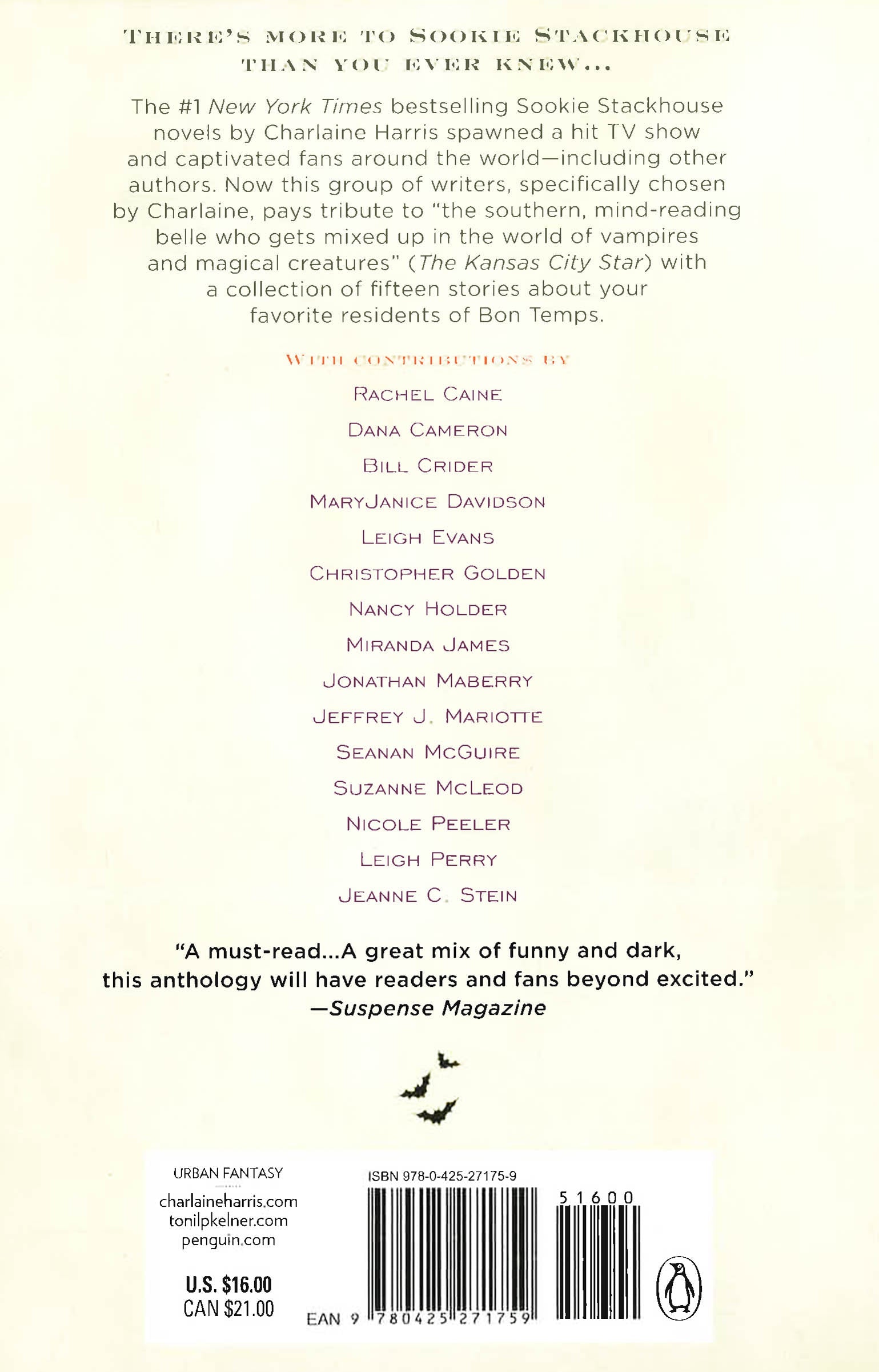 There s more to Sookie Stackhouse than you ever knew The #1 "New York Times" bestselling Sookie Stackhouse novels by Charlaine Harris spawned a hit TV show and captivated fans around the world including other authors. Now this group of writers, specifically chosen by Charlaine, pays tribute to the southern, mind-reading belle who gets mixed up in the world of vampires and magical creatures ("The Kansas City Star") with a collection of fifteen stories about your favorite residents of Bon Temps. With contributions by Rachel Caine Dana Cameron Bill Crider MaryJanice Davidson Leigh Evans Christopher Golden Nancy Holder Miranda James Jonathan Maberry Jeffrey J. Mariotte Seanan McGuire Suzanne McLeod Nicole Peeler Leigh Perry Jeanne C. Stein"