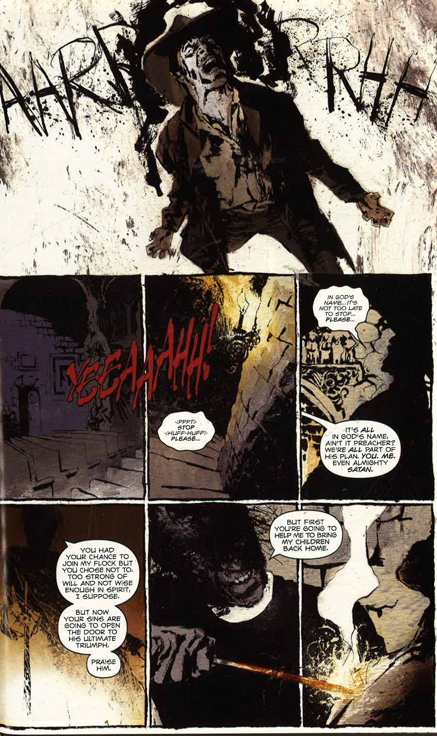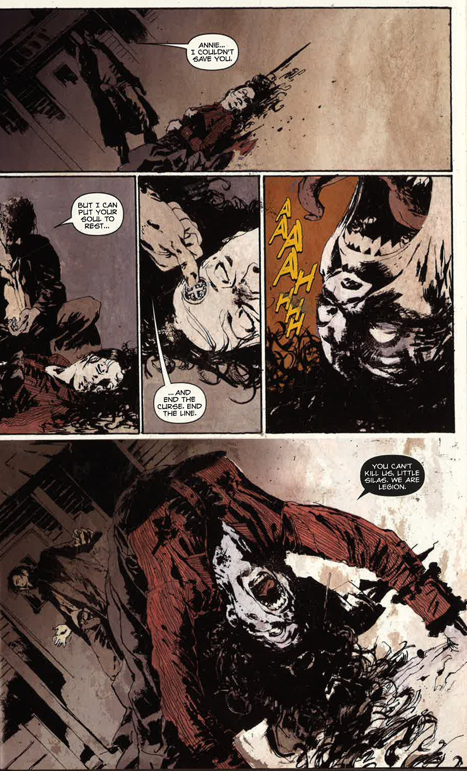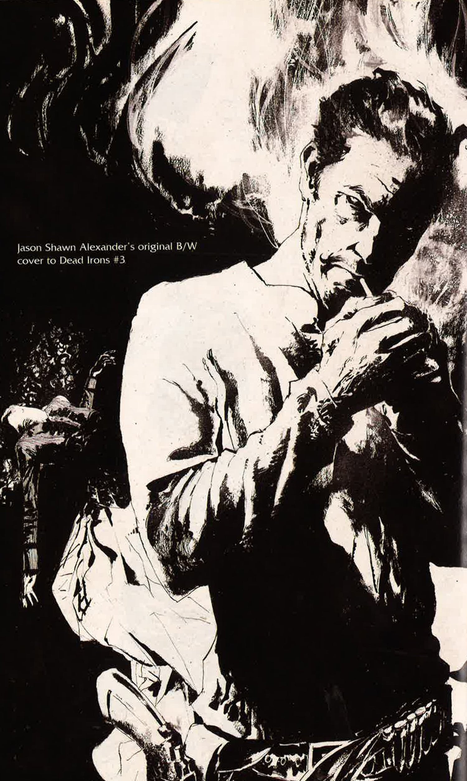 Three bounty hunter siblings blaze a path of death and destruction across the old west. Traveling by moonlight they rip criminals screaming for mercy from their hiding places, but none is ever given. The Irons are the most feared bounty hunting killers in the west, but that fear isn't based on them being the fastest with a pistol or rifle. It's because they're the Walking Dead! A lone, tortured soul tracks them with vengeance and salvation driving him to end the curse upon his family. Those who he rescues call him savior but those who look upon his twisted and scarred face call him monster. Silas Irons is the only hope his brothers and sister have of salvation from the abominations they've become. But even the purity of his heart can't stop the unnatural rage and bloodlust building in his diseased soul. A black curse turned these siblings into monsters but deep rooted and twisted family history made them into the worst kind of horrors. This year's biggest supernatural western tale begins here! Written by James Kuhoric (Freddy vs Jason vs Ash), illustrated by Jason Alexander (BPRD), and based on character designs and covers by Jae Lee (The Dark Tower).