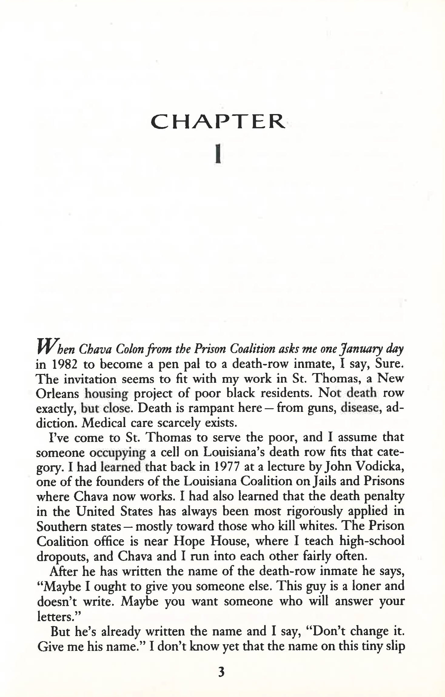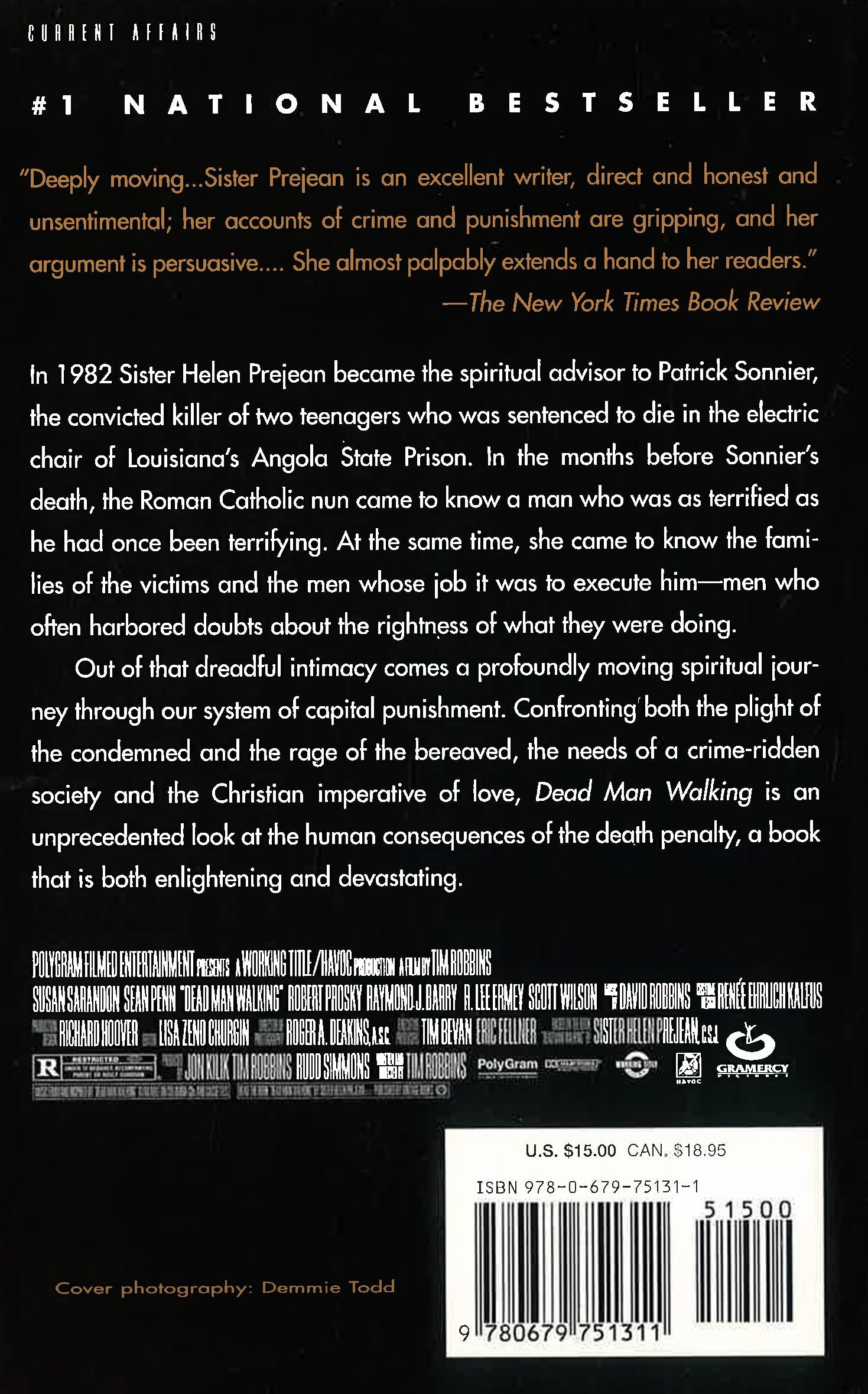 When Chava Colon from the Prison Coalition asks me one January day in 1982 to become a pen pal to a death-row inmate, I say, Sure. The invitation seems to fit with my work in St. Thomas, a New Orleans housing project of poor black residents. Not death row exactly, but close. Thus begins Sister Helen Prejean's story of her encounter with the death penalty in America. When she first writes to Patrick Sonnier, the condemned killer of two teenagers, this unassuming Roman Catholic nun from a middle class Louisiana family is wholly unprepared for what will follow. As she grows to know Sonnier, she sees the terrified human being beneath the surface of the repentant killer and becomes increasingly disturbed not only by the inhumane conditions of his confinement but also by the terrible anguish he suffers during the long countdown toward execution. She also sees the moral struggles of the public officials - the governor, the head of the Department of Corrections, wardens, guards - who have to carry out killings that the law demands but that they do not personally believe in. And she comes to know the dismaying truth about the death penalty's disproportionate cost in money and resources, and how fragile and sometimes chaotic the justice system can be. Her experience soon leads her to ask: How can society benefit from replicating the violence it condemns? In formulating her answer, however, Helen Prejean also confronts the counterbalancing factors. Chief among them is the devastating rage and grief of the victims' families, whom she comes to know and befriend and whose need for retribution she understands. Prejean's indictment of capital punishment sensitively navigates the complex personal,ethical, and legal issues involved, balancing compassion for both the criminals and the people whose lives they destroy. By turns reflective and deeply personal, spiritual and candidly human, this engrossing and deeply moving meditation on one of the most painfully controversial issue *This book may have remainder mark*