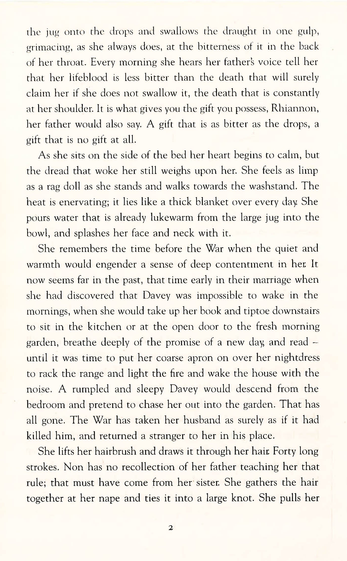 In the aftermath of the Great War, Non Davies wakes one morning to find her husband crouching underneath the kitchen table in a cold sweat, shouldering an imaginary rifle. What has changed her Davey so completely? A clue arrives inside a mysterious letter, which takes her to London in search of the answer. When she returns home, Non finds that the dark secrets of Davey's past are working their way ever closer to the surface. She has to summon all her courage and compassion to restore her beloved husband and guard the fragile happiness of her war-weary village.