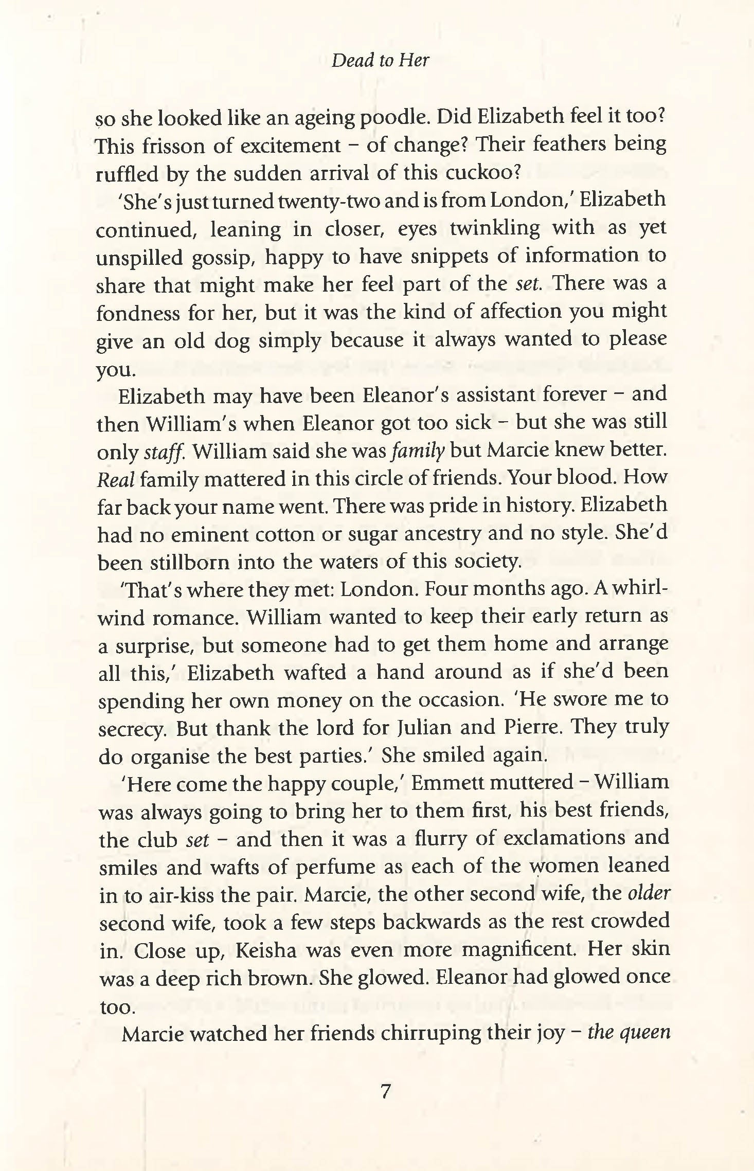 The latest gripping thriller from the No.1 Sunday Times bestselling author of Behind Her Eyes, now a Netflix sensation! 'Gloriously glamorous, and brilliantly plotted: Dead to Her is everything I love in a novel' Clare Mackintosh, bestselling author of I Let You Go 'An absolute rollercoaster of a ride: twist upon twist, expertly handled - I actually gasped out loud several times' Lucy Foley, bestselling author of The Guest List The perfect couple... When Marcie walked down the aisle to marry Jason Maddox, she knew her life would never be the same again. Charming, rich, handsome - Jason can give her everything she's ever wanted. The uninvited guest... But then Keisha arrives in town, and Marcie realises her life of luxury could be snatched away. Because Keisha seems to know all of Marcie's secrets - the shocking, the scandalous, and the downright sinful. The fight for survival... Marcie refuses to go down without a fight. The only question is - how far will she go to come out on top? 'A marvellously compelling read' Liz Nugent, bestselling author of Lying in Wait 'Dark, hypnotic and immersive' Harriet Tyce, bestselling author of Blood Orange 'So deliciously dark and twisted, and that setting was just perfection' Lisa Hall, bestselling author of Between You and Me 'A wonderful, spooky romp...like Dallas meets Tales of the Unexpected!' Richard Osman, author of The Thursday Murder Club 'Set in the racially charged high society of the American deep South, this is the clash of two ambitious, beautiful trophy wives, each with her own secrets' Daily Mail 'Warning: you won't put this down...twisty, addictive' Sunday Telegraph