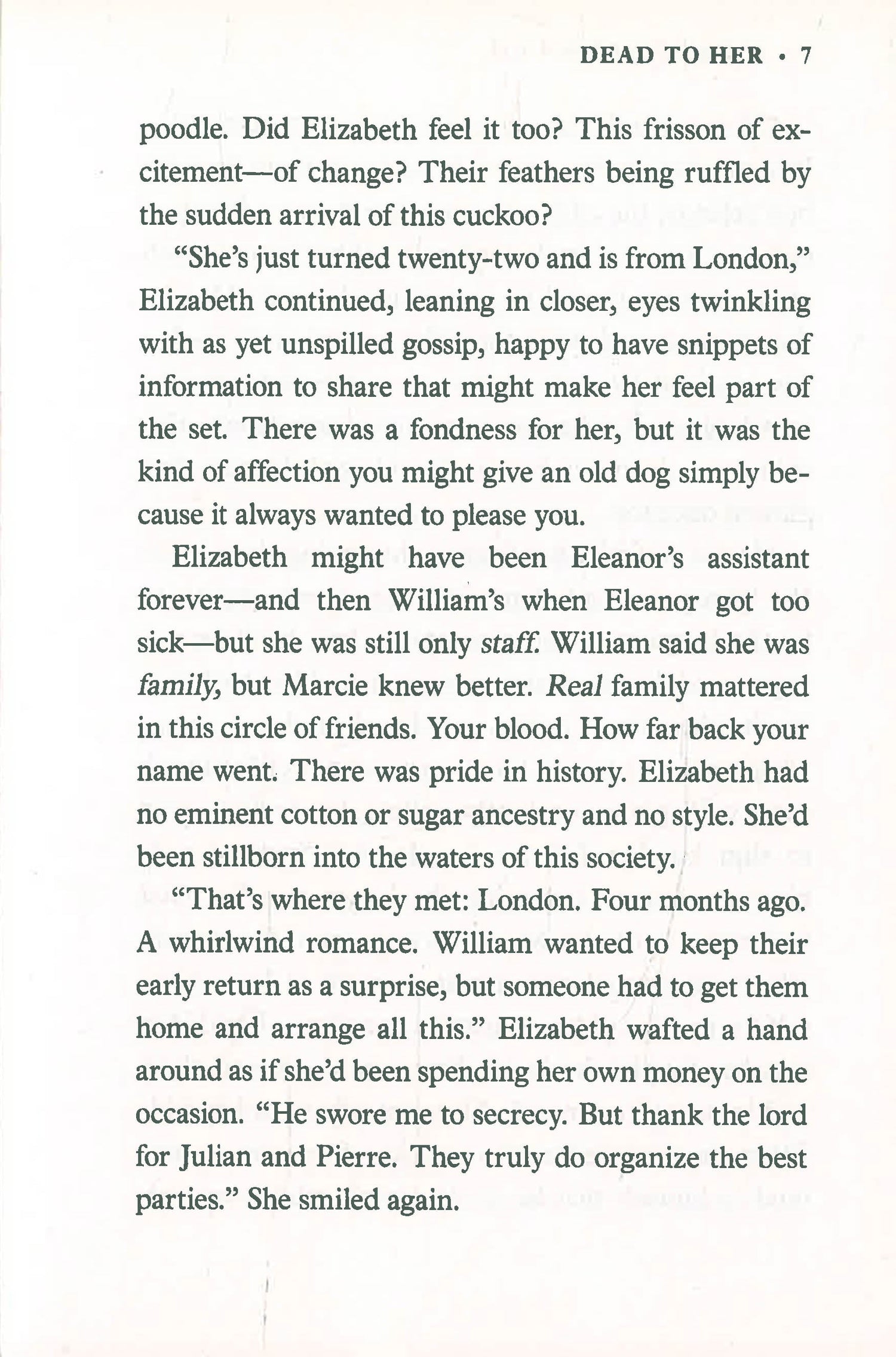 Old money, old ties, old secrets. Marcie may have married into this world—