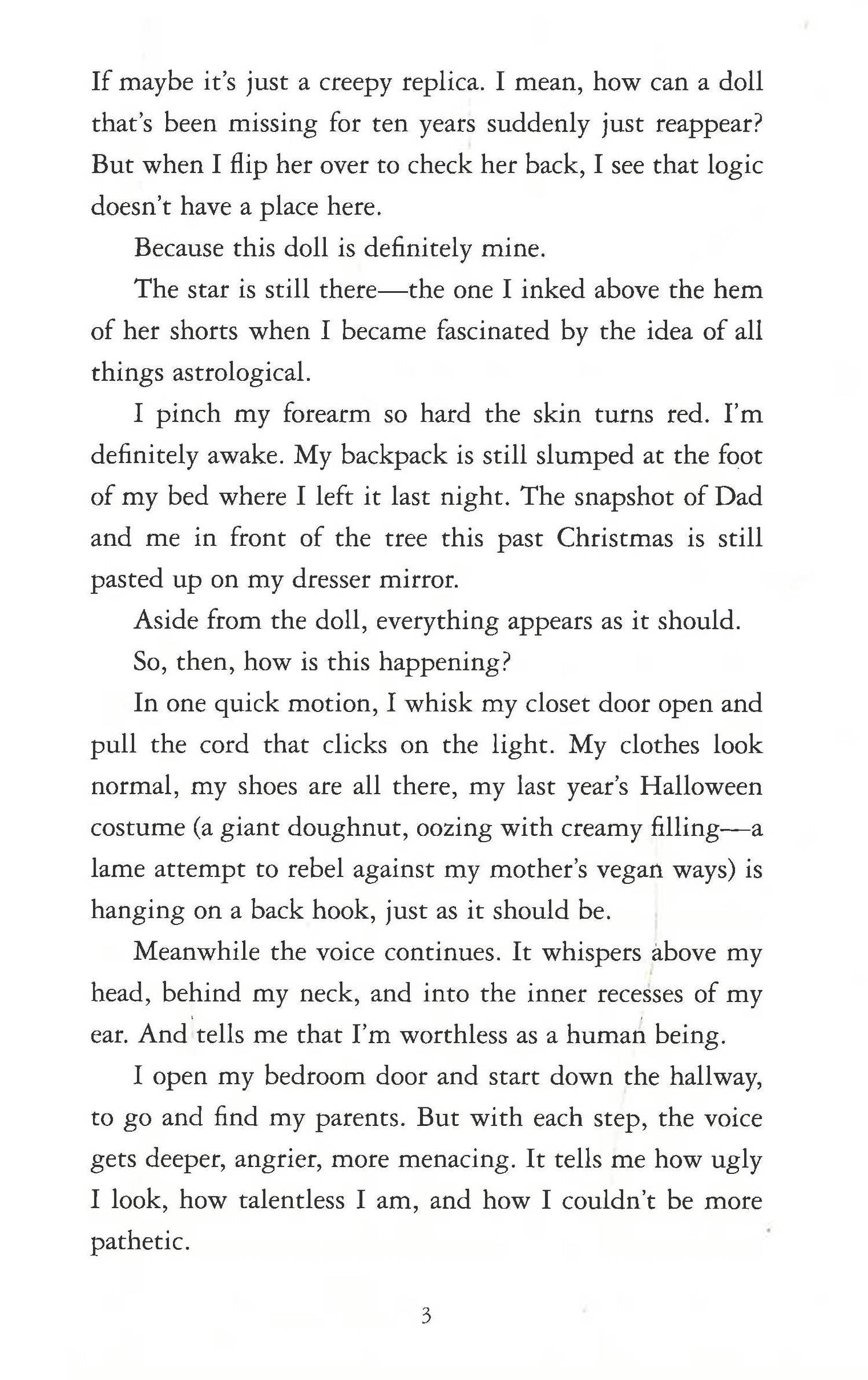 High school junior Camelia thought her powers of psychometry only gave her the ability to sense the future through touch. But now she’s started to hear voices. Mean voices. Berating her, telling her how ugly she is, and that she’d be better off dead. It’s a troubling development that has Camelia terrified for her mental stability, especially since her deranged aunt with a suicidal history has just moved into the family house. More torturing, ex-boyfriend Ben, who has similar psychometric abilities, has been spending more time with their classmate Alejandra. With the line between right and wrong fraying, Camelia turns to pottery to get a grasp on her emotions. She begins sculpting a beautiful figure skater, only to receive frightening premonitions that someone’s in danger. But who is the victim? And how can Camelia help them when she is on the brink of losing her own sanity?
