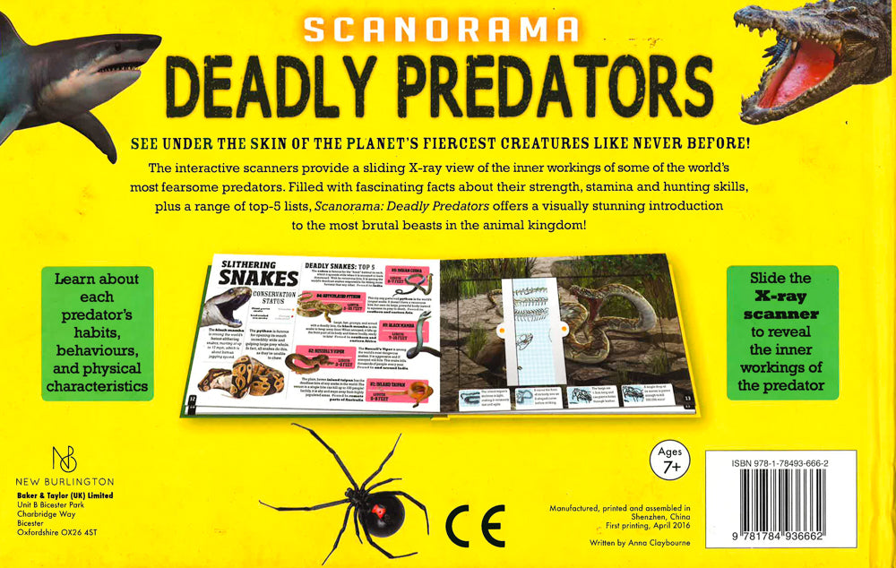 The interactive scanners provide a sliding X-ray view of the inner workings of some of the world's most fearsome predators. Filled with fascinating facts about their strength, stamina and hunting skills, plus a range of top-5 lists, Scanorama: Deadly Predators offers a visually stunning introduction to the most brutal beasts in the animal kingdom!