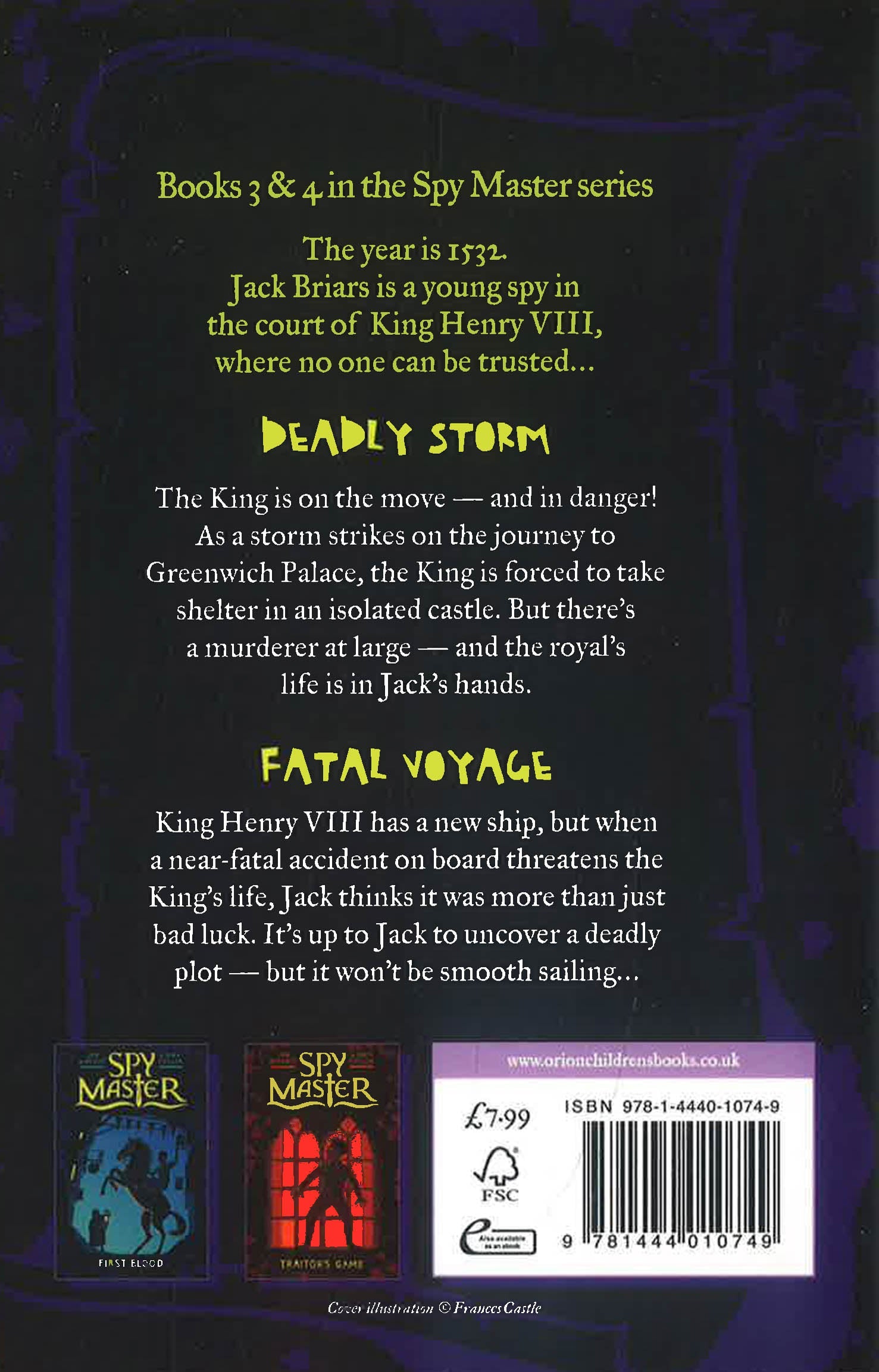 The third and fourth instalments of this exciting spy series set in Tudor England, amid the intrigue and danger of Henry VIII's royal court, from the authors of books in the bestselling BEAST QUEST series.In DEADLY STORM the royal court of King Henry VIII is on the move - and in danger!A terrible storm forces the court to shelter in a nearby castle. The King is in disguise, and he's not the only person with a secret. Death stalks the castle - but is it the dreaded plague or something even more sinister? When a servant is found dead, it's clear that something terrible is going on.Can young spy, Jack Briars, and his friend, Cat Thimblebee, solve the mystery before the King himself becomes a target?While in FATAL VOYAGE, Jack and Cat are once again called upon to save the King's life, this time aboard his majestic new ship, Fair Anne. But will this adventure leave the pair all at sea?A thrilling adventure series featuring young spy Jack Briars and his friend, Cat Thimblebee. This is WOLF HALL for children.
