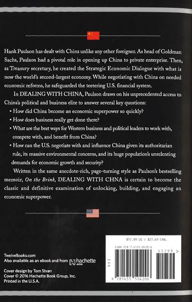 Hank Paulson has dealt with China unlike any other foreigner. As head of Goldman Sachs, Paulson had a pivotal role in opening up China to private enterprise. Then, as Treasury secretary, he created the Strategic Economic Dialogue with what is now the world's second-largest economy. He negotiated with China on needed economic reforms, while safeguarding the teetering U.S. financial system. Over his career, Paulson has worked with scores of top Chinese leaders, including Xi Jinping, China's most powerful man in decades. In DEALING WITH CHINA, Paulson draws on his unprecedented access to modern China's political and business elite, including its three most recent heads of state, to answer several key questions: How did China become an economic superpower so quickly? How does business really get done there? What are the best ways for Western business and political leaders to work with, compete with, and benefit from China? How can the U.S. negotiate with and influence China given its authoritarian rule, its massive environmental concerns, and its huge population's unrelenting demands for economic growth and security? Written in the same anecdote-rich, page-turning style as Paulson's bestselling memoir, On the Brink, DEALING WITH CHINA is certain to become the classic and definitive examination of how to engage China's leaders as they build their economic superpower.
