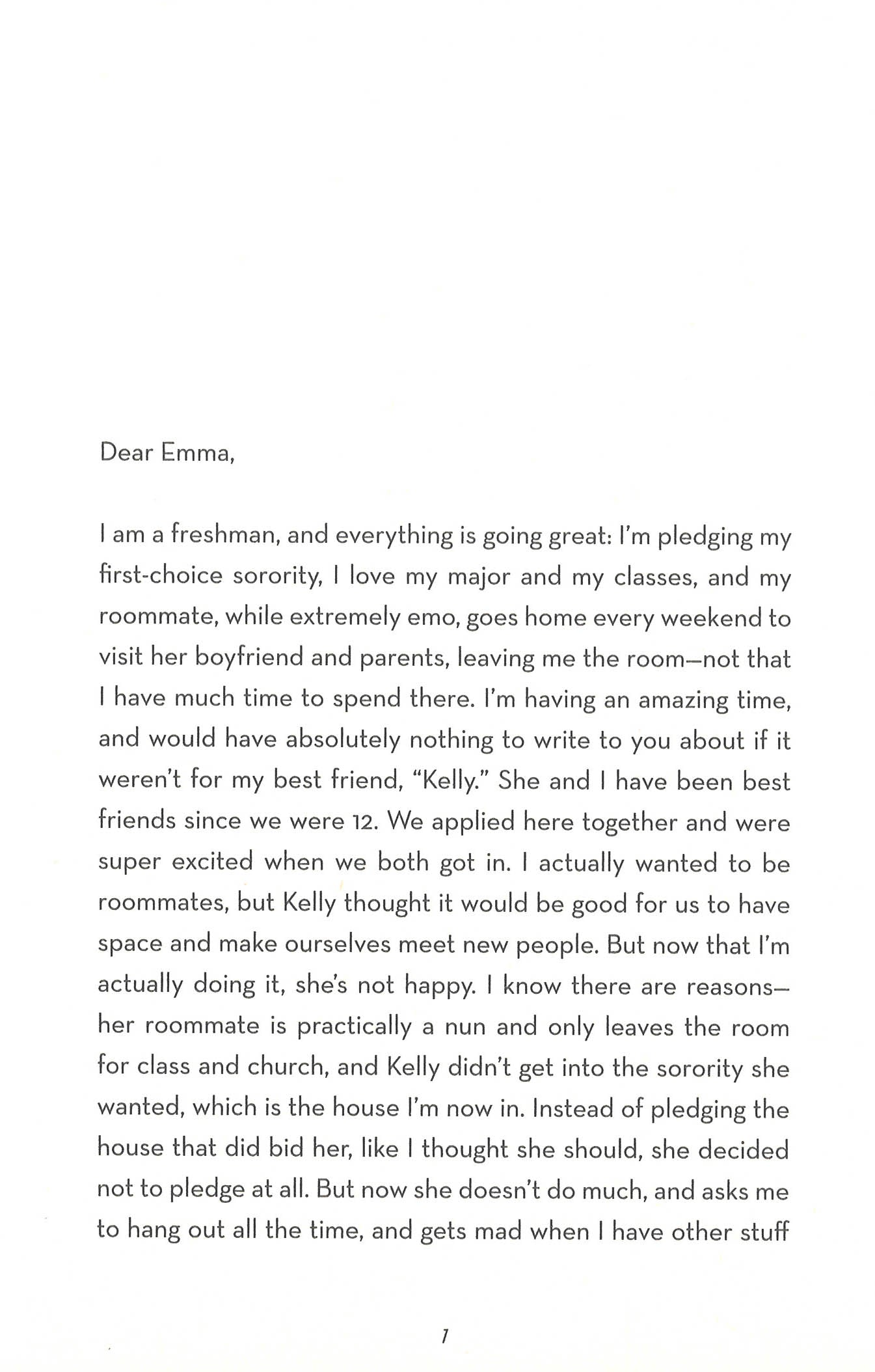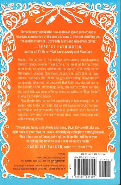 Harriet, the author of her college newspaper's pseudonymous student advice column "Dear Emma," is great at telling others what to do, dispensing wisdom for the lovelorn and lonely on her Midwestern campus. Somehow, though, she can't take her own advice, especially after Keith, the guy she's dating, blows her off completely. When Harriet discovers that Keith has started seeing the beautiful and intimidating Remy, she wants to hate her. But she can't help warming to Remy, who soon writes to "Dear Emma" asking for romantic advice. Now Harriet has the perfect opportunity to take revenge on the person who broke her heart. But as she begins to doubt her own motivations and presumably faultless guidance, she's forced to question how much she really knows about love, friendship and well-meaning advice.
