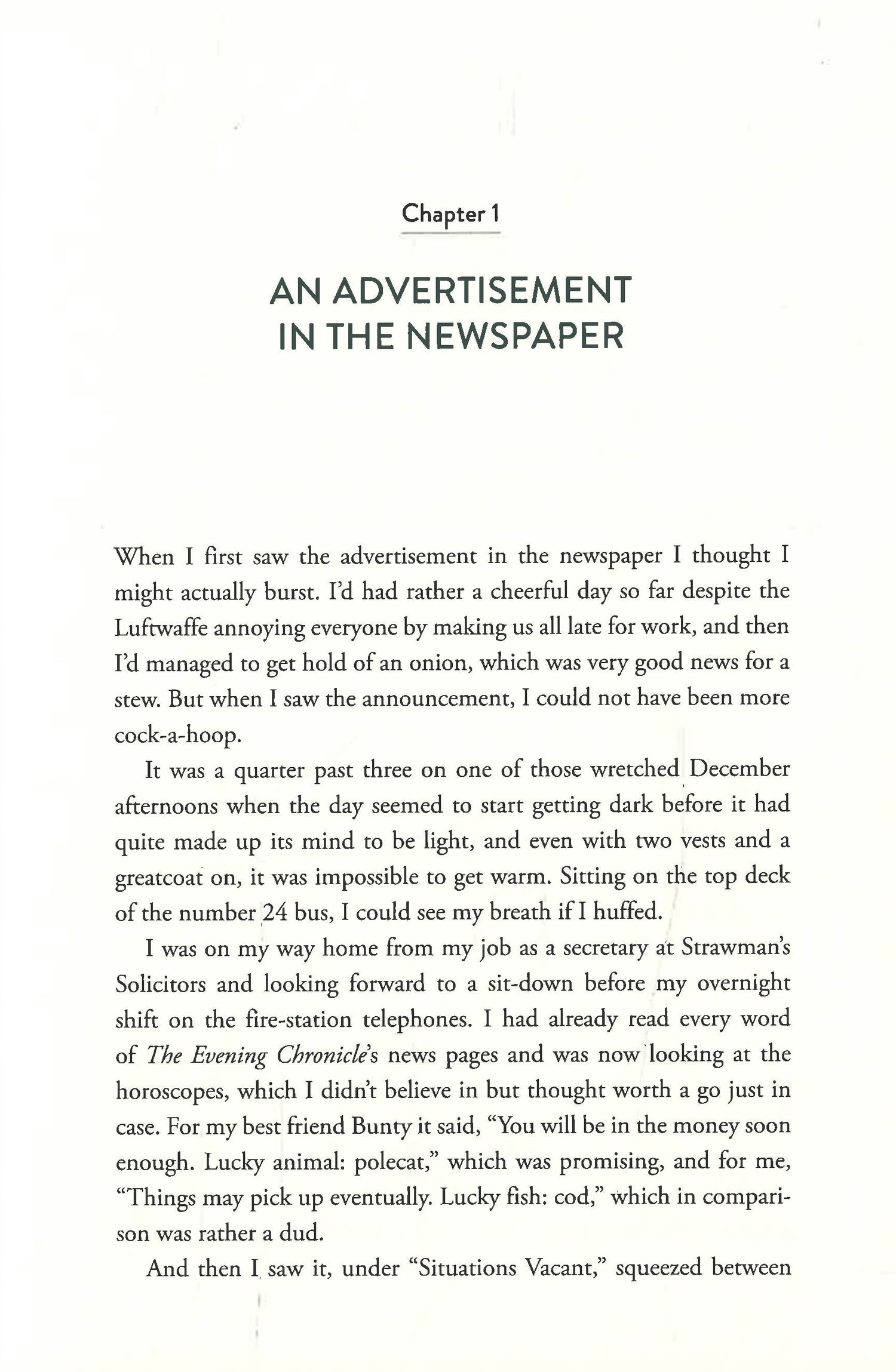 Mrs. Bird is very clear: letters containing any Unpleasantness must go straight into the bin. But as Emmy reads the desperate pleas from women who many have Gone Too Far with the wrong man, or can’t bear to let their children be evacuated, she begins to secretly write back to the readers who have poured out their troubles.
