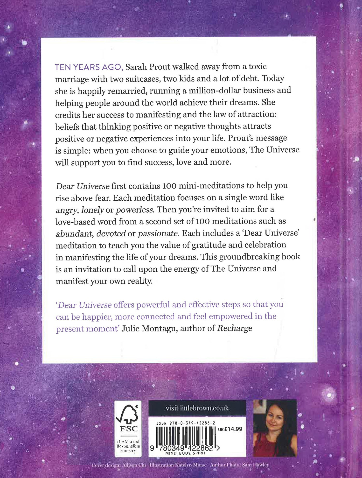 For years it has been said, 'you can achieve anything you set your mind to'. But have you ever wondered why so many people struggle to achieve health, wealth and happiness? Why do we bottle-up our emotions and feel like life is happening to us, rather than for us? Dear Universe reveals the real answers to create abundance, love, freedom and joy in all areas of your life. From the moment you open it's pages, you'll begin to understand your hidden, untapped power to guide your emotions and create the life you want, no matter what you're experiencing.