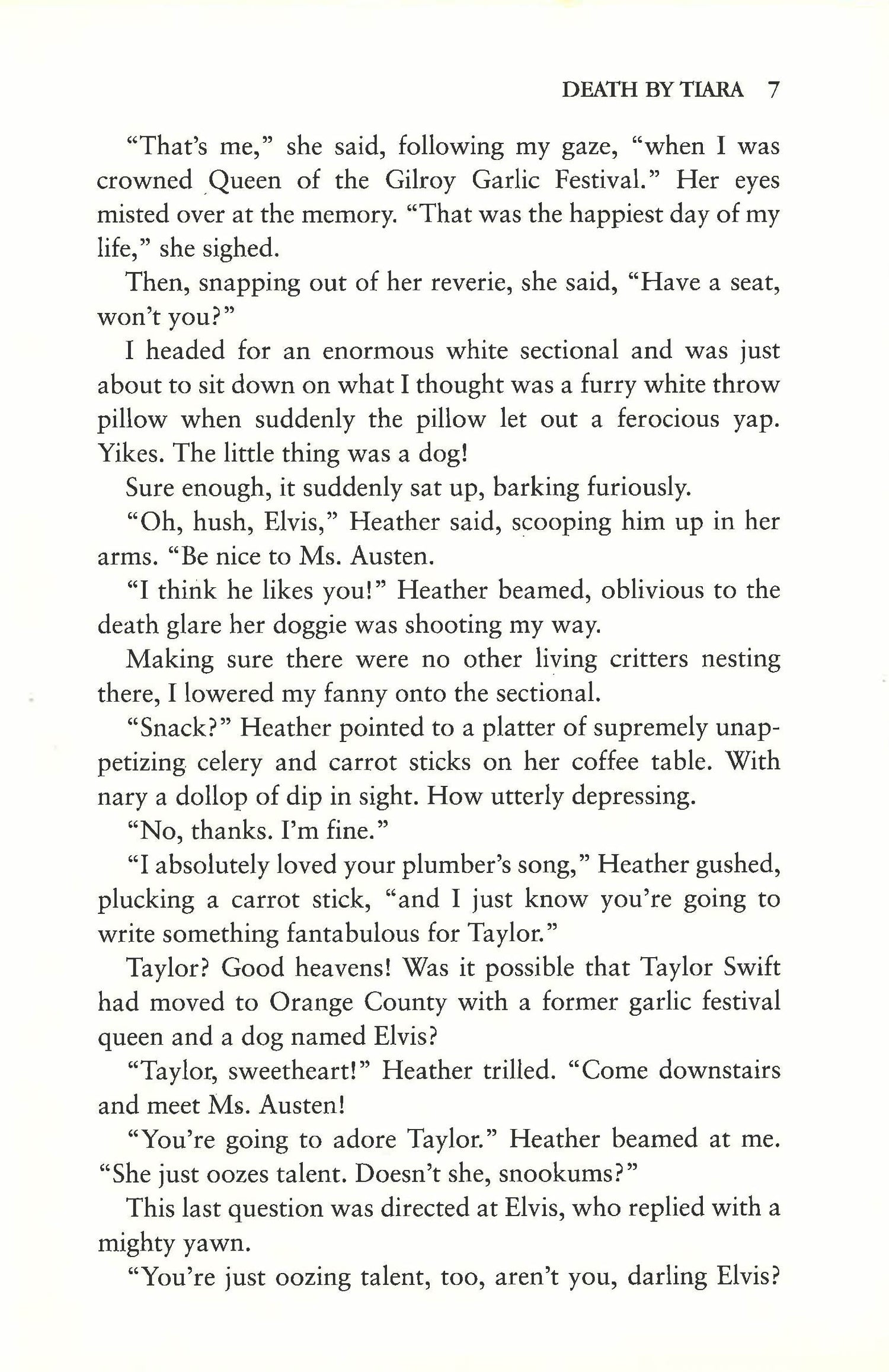 "Entertaining...cozy fun."--Publishers Weekly Freelance writer Jaine Austen thought she knew what she was getting herself into when she landed a gig working behind the scenes at a teen beauty pageant. But between the vicious stage moms, exacting judges, and trash-talking teens, she's not sure she's the woman for the job--especially when the catfights turn deadly... Jaine has been hired by über-pushy stage mom Heather Van Sant to write lyrics for her daughter Taylor's song in the talent competition for the Miss Teen Queen America pageant. It's different from anything Jaine has done before, but if nothing else, she's looking forward to a free weekend in a swanky hotel and a chance to see what really goes on backstage at a beauty pageant. But the hotel is a dump, the cattiness is out of control, and Candace--the perfectly-coiffed, whip-cracking pageant director--is making even Jaine's life miserable. When Candace's assistant Amy is found bludgeoned to death with a silver tiara, there are more suspects than sequins on a pageant gown--and Heather is first on the list. Taylor begs Jaine to help clear her mom's name, but the search for the killer hits a dead end as Jaine quickly realizes that finding the culprit is going to be trickier than walking the stage in stilettos...
