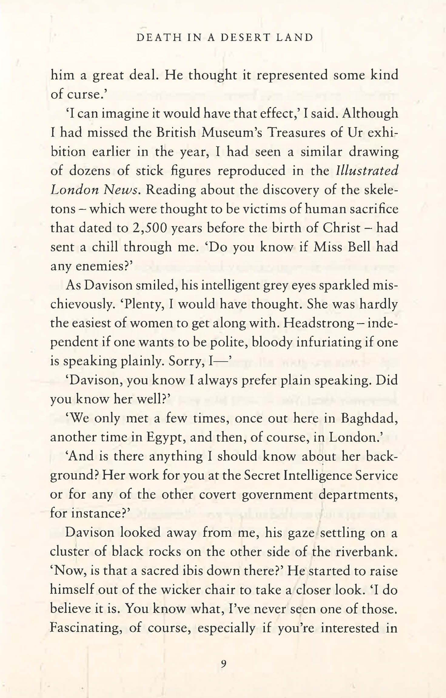 In her letter, Bell suggests that if she were to die the best place to look for her murderer would be Ur, the archaeological site in ancient Mesopotamia famous for its Great Death Pit.