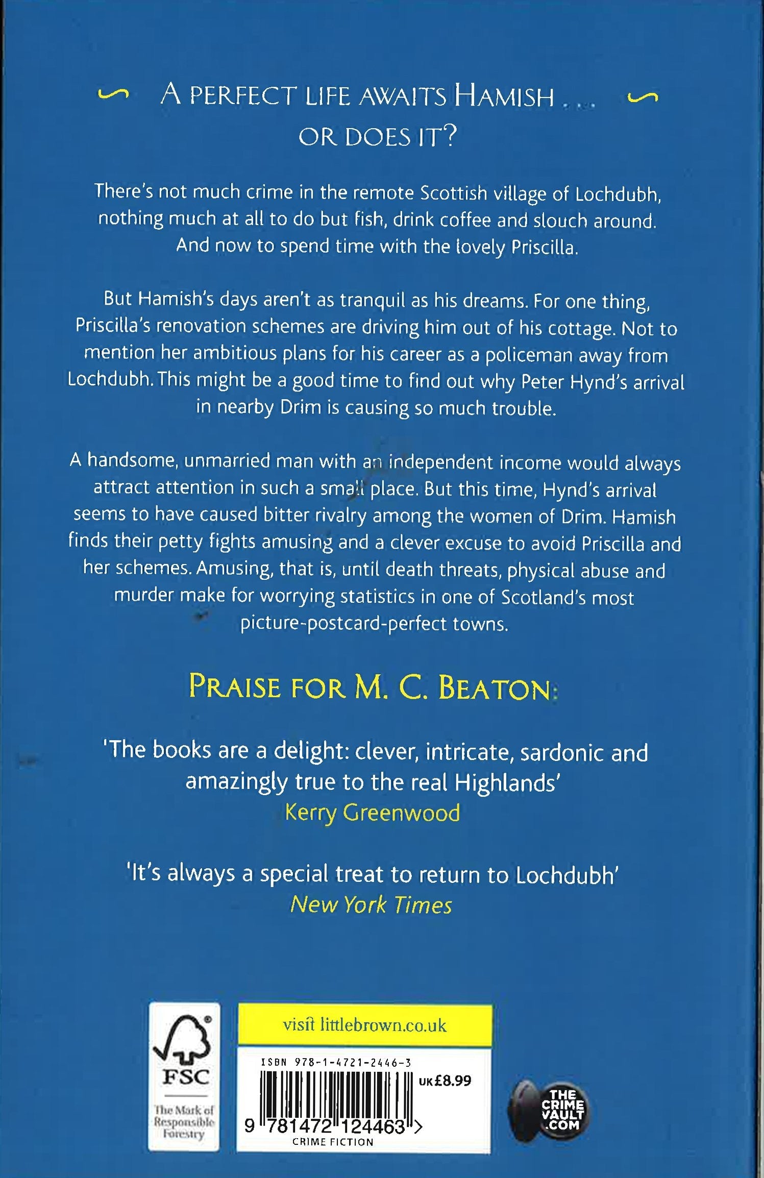 The tenth Hamish Macbeth mystery, beautifully republished with a brand new cover.No wonder she's been crowned Queen of Cosy Crime' Mail on SundayNow that Priscilla Halburton-Smythe has agreed to marry him, Police Sergeant Hamish Macbeth can't imagine a more perfect life. There's not much crime in his remote Scottish village of Lochdubh, nothing much at all to do but fish, drink coffee, and slouch around. And now to spend time with lovely Priscilla. But his days aren't as tranquil as his dreams. For one thing, Priscilla's renovation schemes are driving him out of his cottage. Not to mention her ambitious plans for his career as a policeman away from Lochdubh. This might be a good time to find out why Peter Hynd's arrival in nearby Drim was causing so much trouble. An attractive, unmarried man with an independent income would always attract attention in such a small place. But this time Hynd's arrival seems to have caused bitter rivalry among the women of Drim. Hamish finds their petty fights amusing and a clever excuse to avoid Priscilla and her schemes for a new electric stove (to replace his beloved woodburning appliance), a posh new bathroom, and virtuous nutrition. Amusing, that is, until death threats, physical abuse, and murder make statistical history in one of Scotland's most picture postcard-perfect towns.