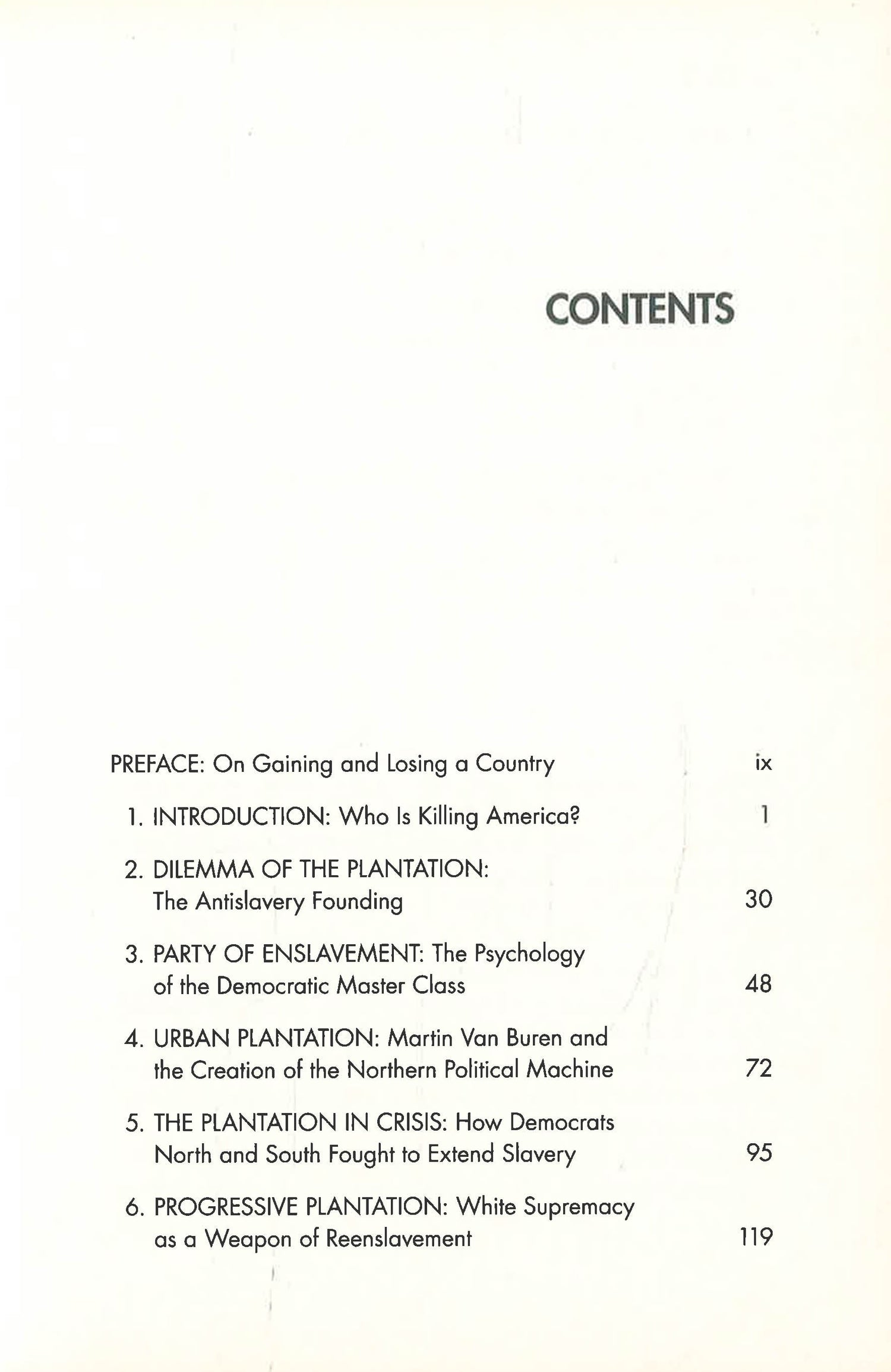 This sweeping alternative history of the Democratic Party goes back to its foundations in the antebellum South. The slaveholding elite devised the plantation as a means of organizing labor and political support. It was a mini welfare state, a cradle to grave system that bred dependency and punished any urge to independence. This model impressed northern Democrats, inspiring the political machines that traded government handouts for votes from ethnic immigrant blocs.