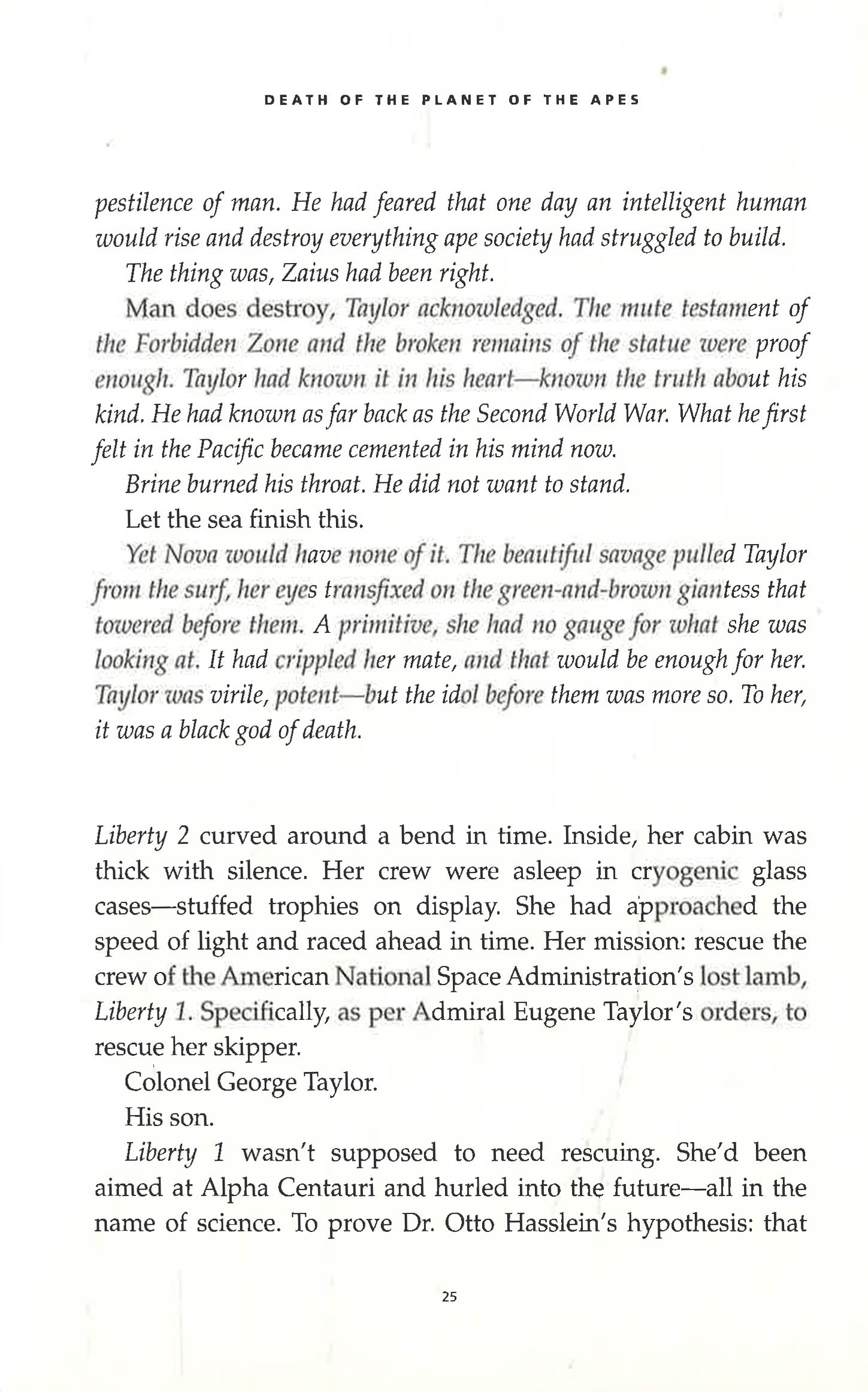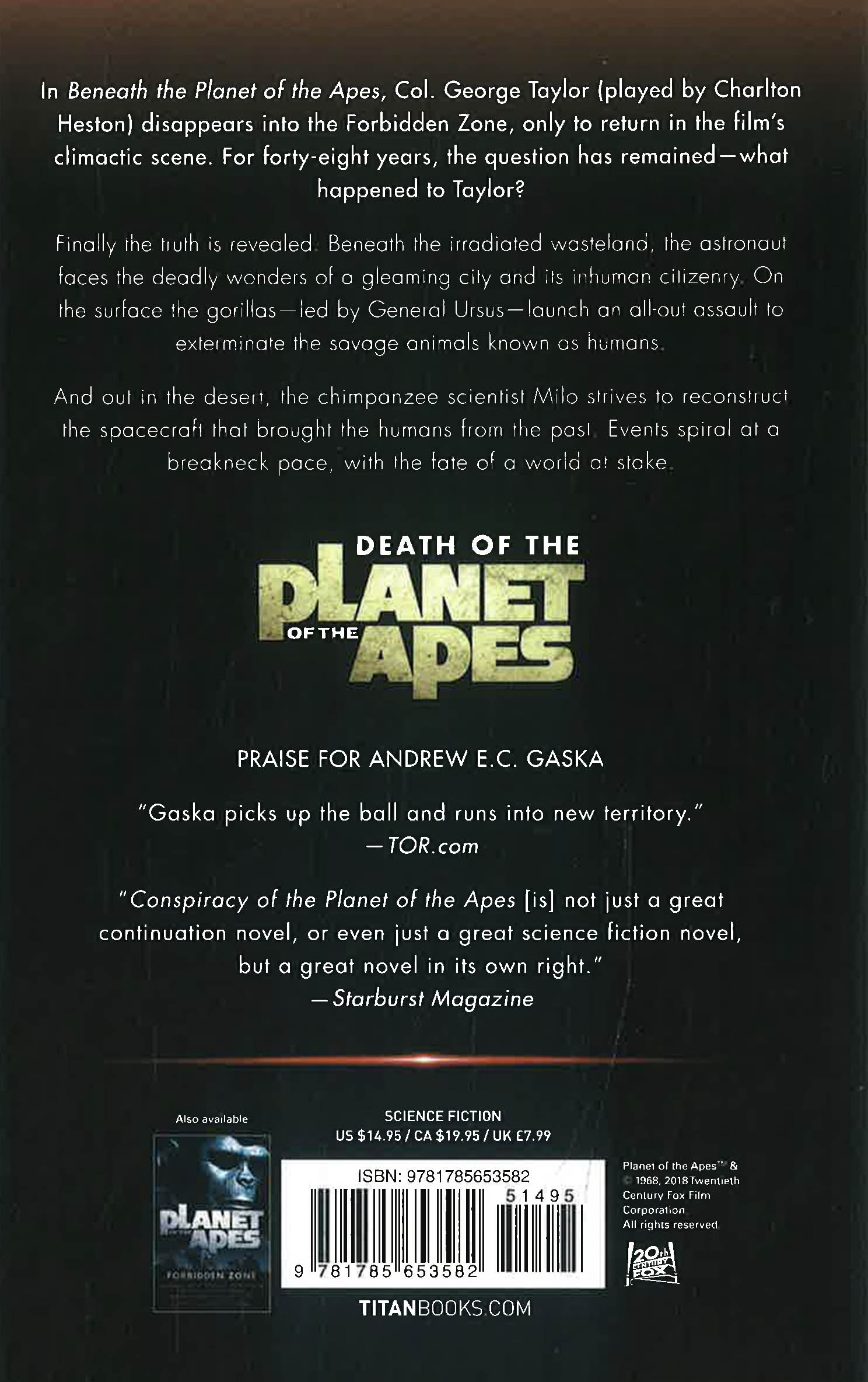 In Beneath the Planet of the Apes, Col. George Taylor (played by Charlton Heston) disappears into the Forbidden Zone, only to return in the film’s climactic scene. For forty-eight years, the question has remained―what happened to Taylor? Finally the truth is revealed. Beneath the irradiated wasteland, the astronaut faces the deadly wonders of a gleaming city and its inhuman citizenry. On the surface the gorillas―led by General Ursus―launch an all-out assault to exterminate the savage animals known as humans. And out in the desert, the chimpanzee scientist Milo strives to reconstruct the spacecraft that brought the humans from the past. Events spiral at a breakneck pace, with the fate of a world at stake.