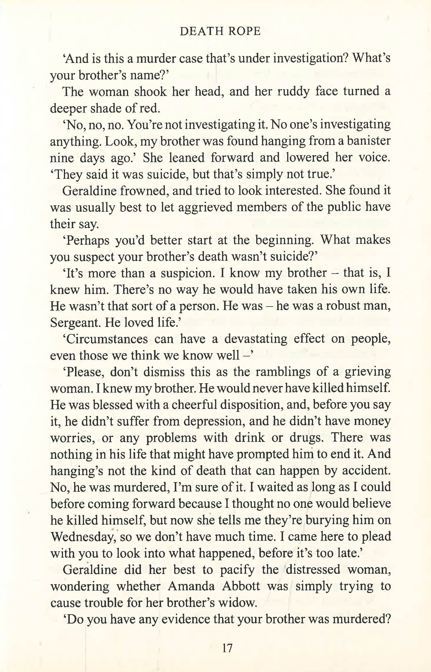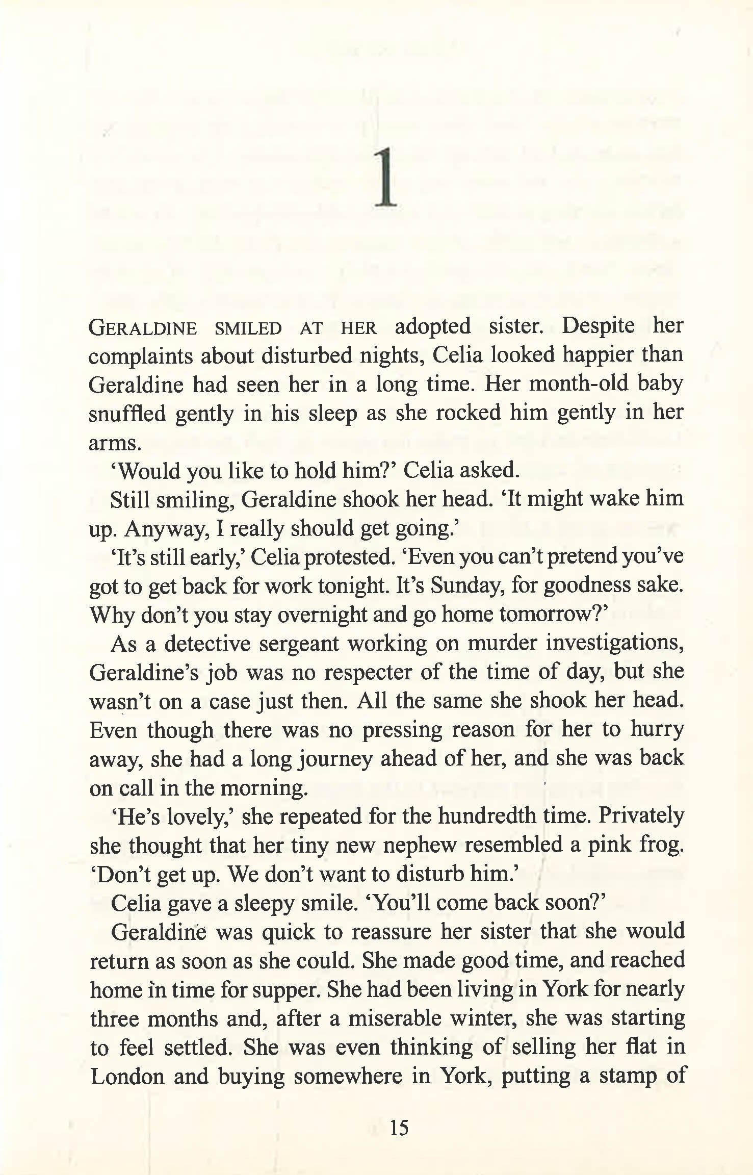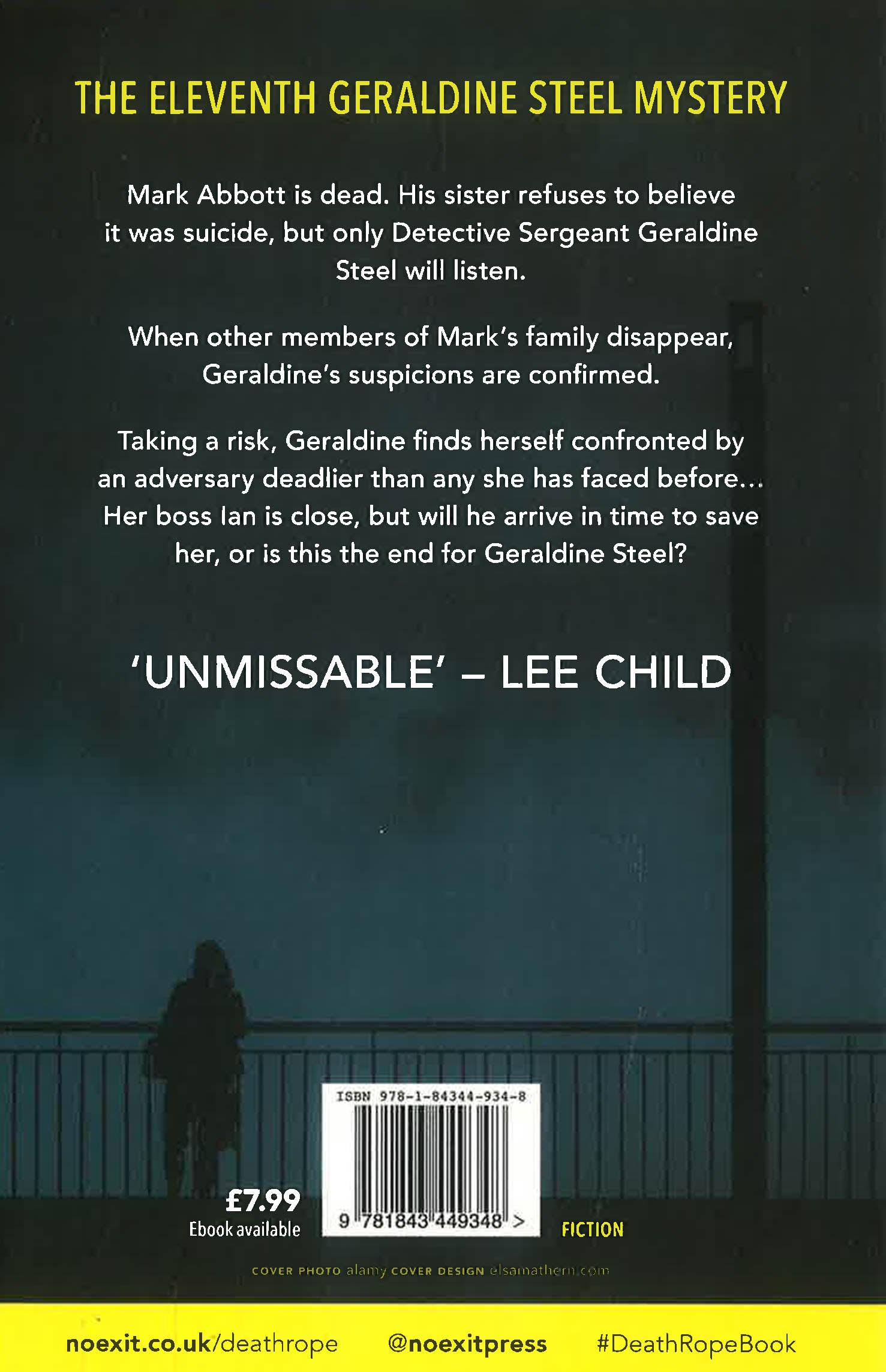 Mark Abbott is dead. His sister refuses to believe it was suicide, but only Detective Sergeant Geraldine Steel will listen. When other members of Mark’s family disappear, Geraldine’s suspicions are confirmed. Taking a risk, Geraldine finds herself confronted by an adversary deadlier than any she has faced before. Her boss Ian is close, but will he arrive in time to save her, or is this the end for Geraldine Steel?