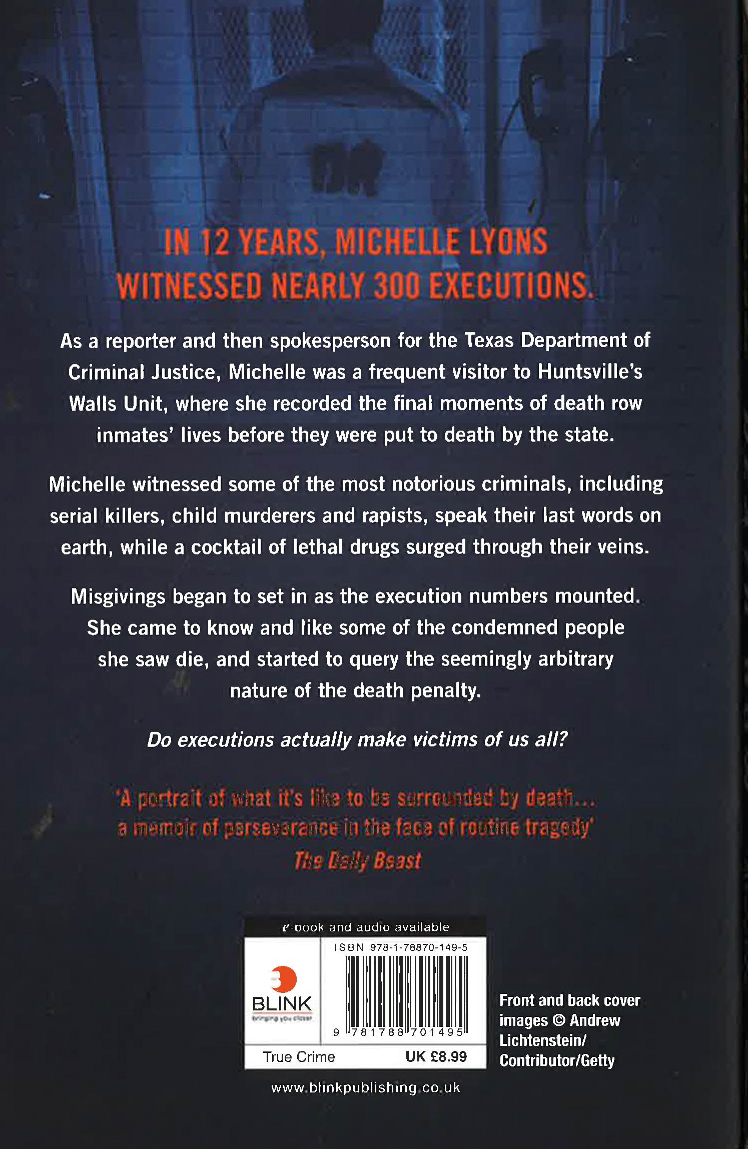 IN 12 YEARS, MICHELLE LYONS WITNESSED NEARLY 300 EXECUTIONS. As a reporter and then spokesperson for the Texas Department of Criminal Justice, Michelle was a frequent visitor to Huntsville's Walls Unit, where she recorded the final moments of death row inmates' lives before they were put to death by the state. Michelle witnessed some of the most notorious criminals, including serial killers, child murderers and rapists, speak their last words on earth, while a cocktail of lethal drugs surged through their veins. Misgivings began to set in as the execution numbers mounted. She came to know and like some of the condemned people she saw die, and began to query the seemingly arbitrary nature of the death penalty. Do executions actually make victims of us all? 'Haunting, dark and hard to put down' Houston Chronicle 'A portrait of what it's like to be surrounded by death... a memoir of perseverance in the face of routine tragedy' The Daily Beast