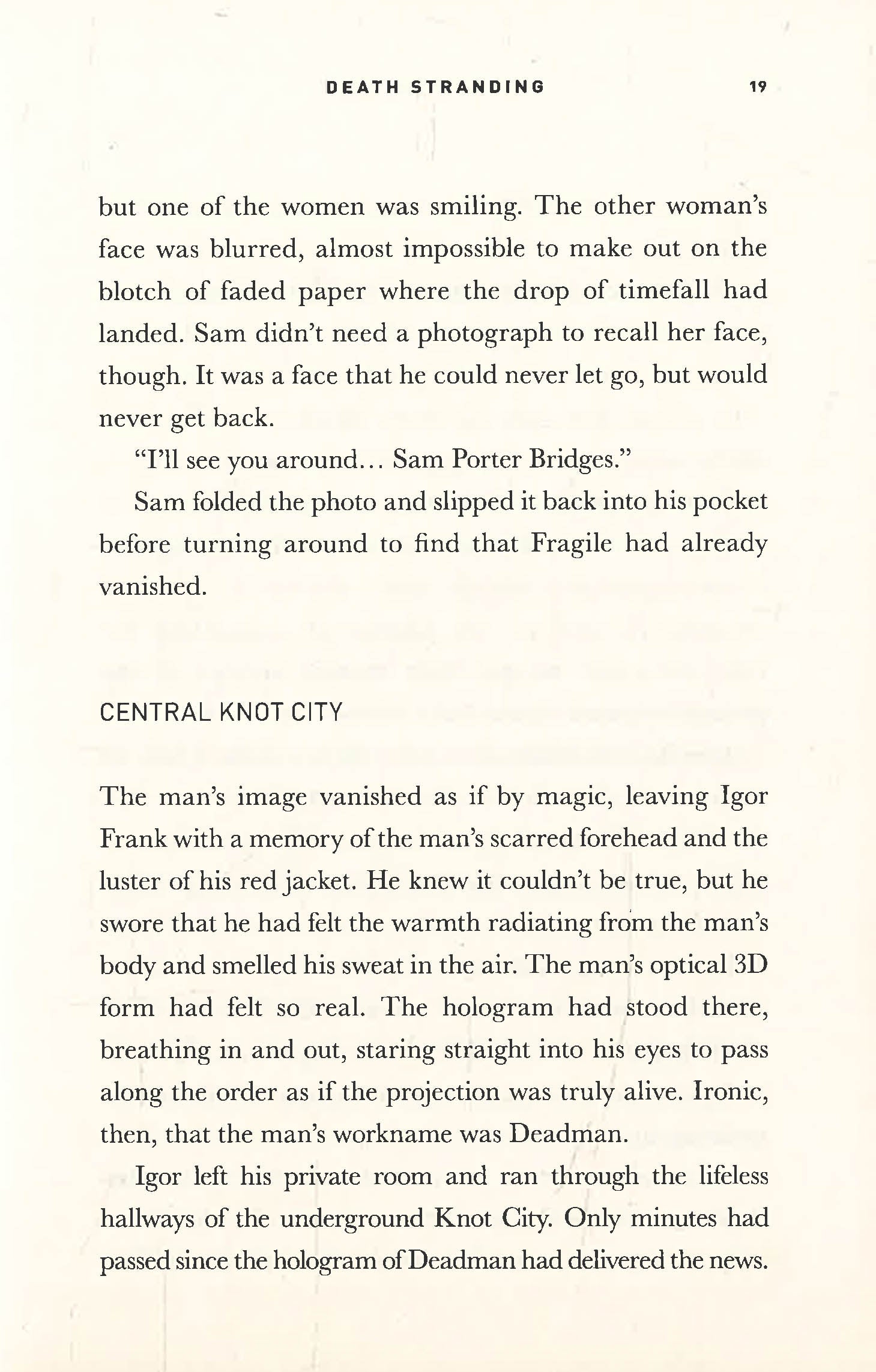 The first volume of the official novelization of the best-selling and award-winning videogame Death Stranding, created by legendary game-creator Hideo Kojima.