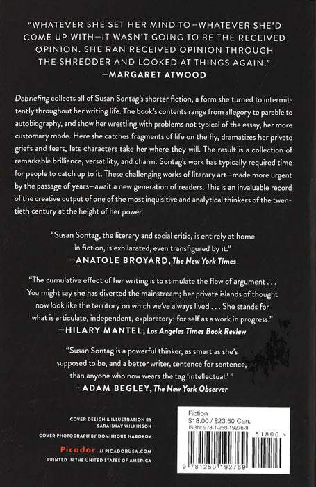An invaluable record of the creative output of one of the most inquisitive and analytical thinkers of the twentieth century at the height of her power, Debriefing collects all of Susan Sontag's shorter fiction, a form she turned to intermittently throughout her writing life.