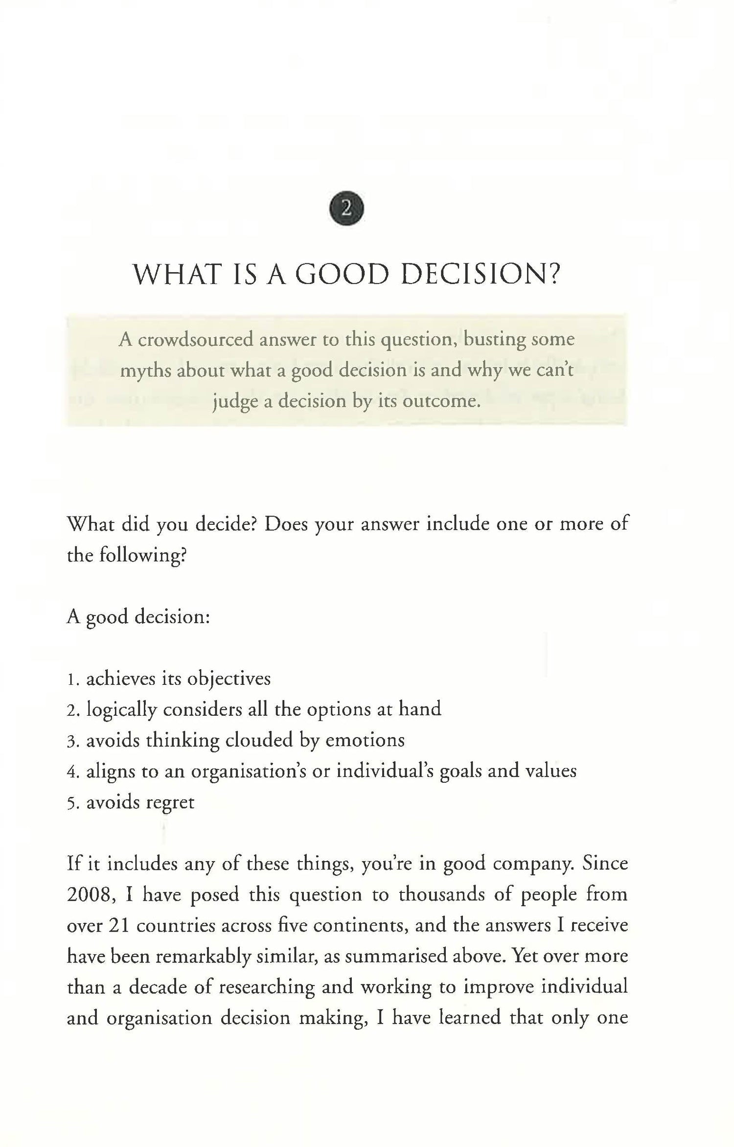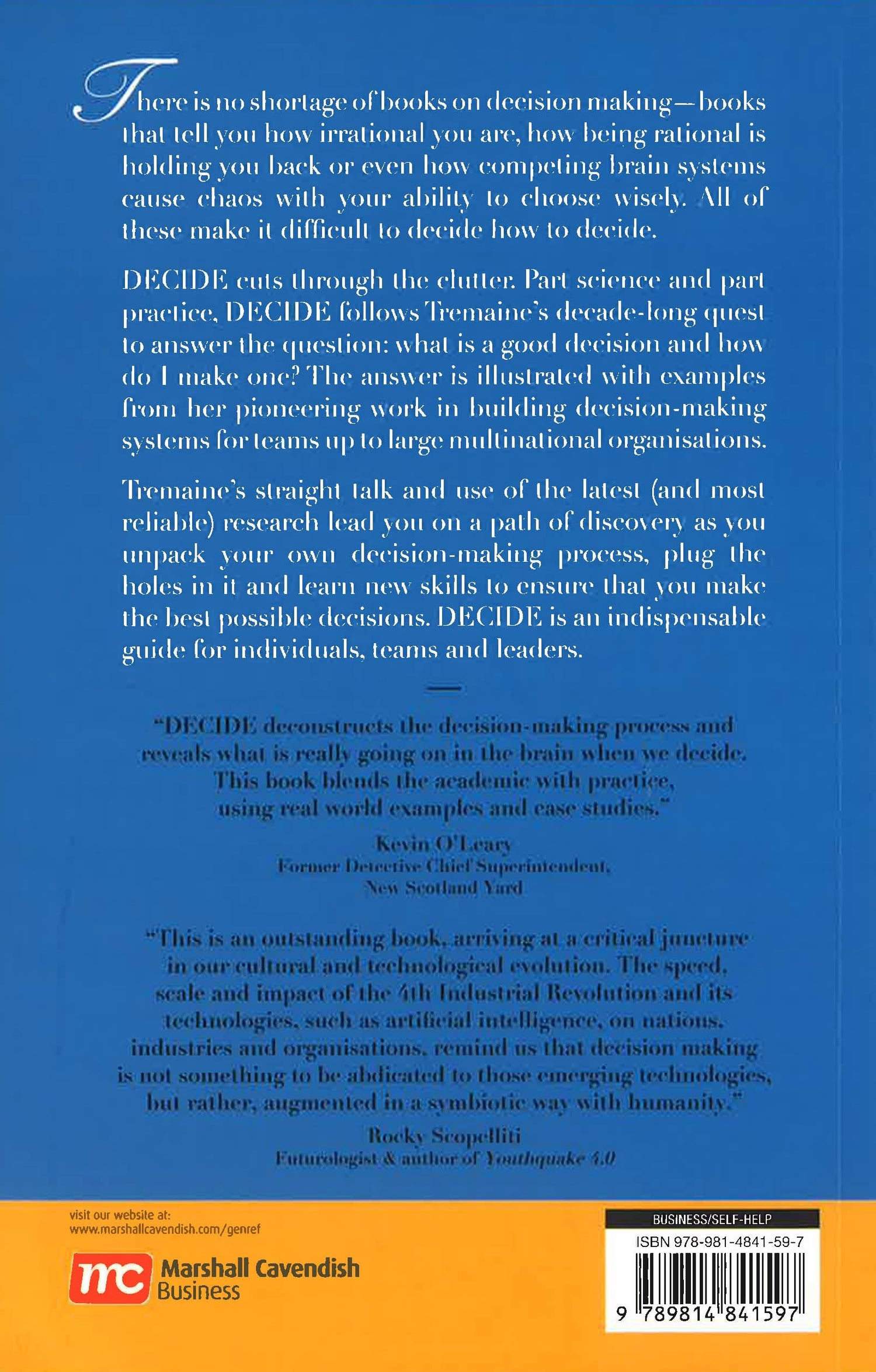 There is no shortage of books on decision making-books that tell you how irrational you are, how being rational is holding you back or how competing brain systems cause chaos with your ability to choose wisely. All of these make it difficult to decide how to decide. DECIDE cuts through the clutter. Part science and part practice, DECIDE follows Tremaine's decade long quest to answer the question: what is a good decision and how do I make one? The answer is illustrated with examples from her pioneering work in building decision-making systems for teams up to large multinational organisations. Tremaine's straight talk and use of the latest (and most reliable) research lead you on a path of discovery as you unpack your own decision-making process, plug the holes in it and learn new skills to ensure that you make the best possible decisions. DECIDE is an indispensable guide for individuals, teams and leaders.