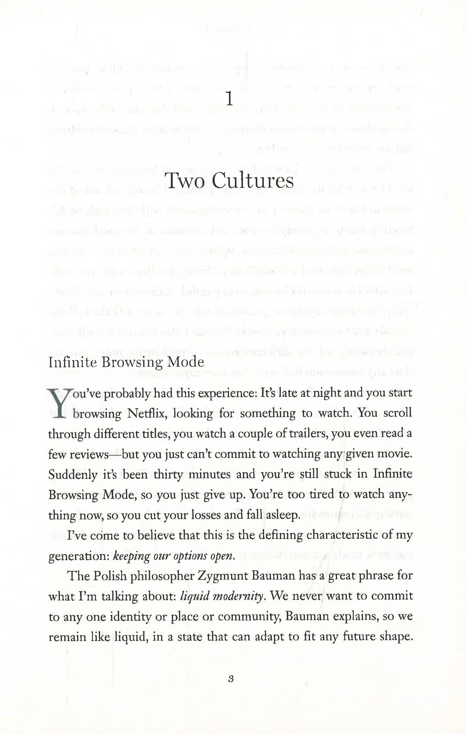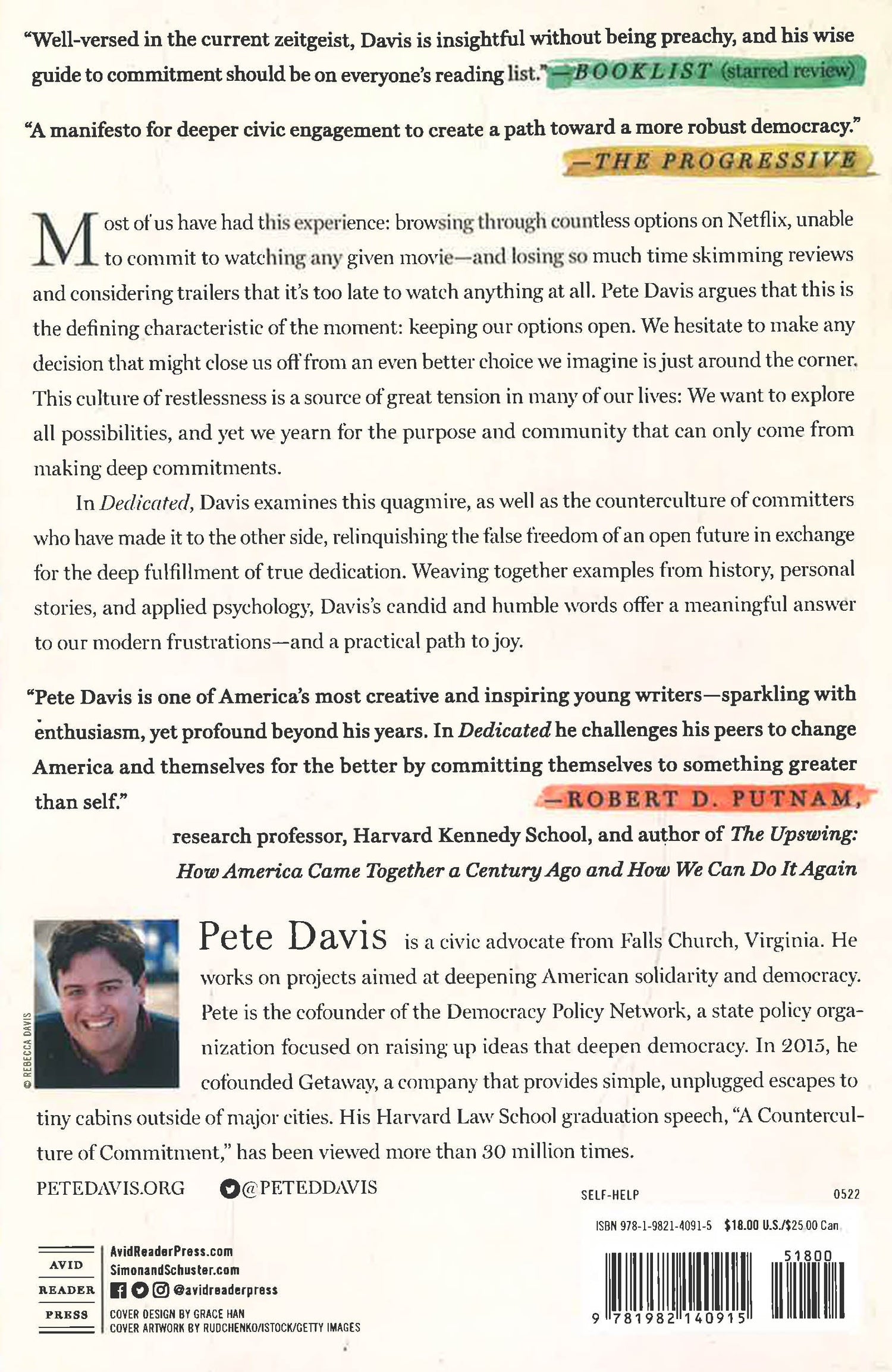 Most of us have had this experience: browsing through countless options on Netflix, unable to commit to watching any given movie—and losing so much time skimming reviews and considering trailers that it’s too late to watch anything at all. In a book inspired by an idea first articulated in a viral commencement address, Pete Davis argues that this is the defining characteristic of the moment: keeping our options open. We are stuck in “Infinite Browsing Mode”—swiping through endless dating profiles without committing to a single partner, jumping from place to place searching for the next big thing, and refusing to make any decision that might close us off from an even better choice we imagine is just around the corner. This culture of restlessness and indecision, Davis argues, is causing tension in the lives of young people today: We want to keep our options open, and yet we yearn for the purpose, community, and depth that can only come from making deep commitments.