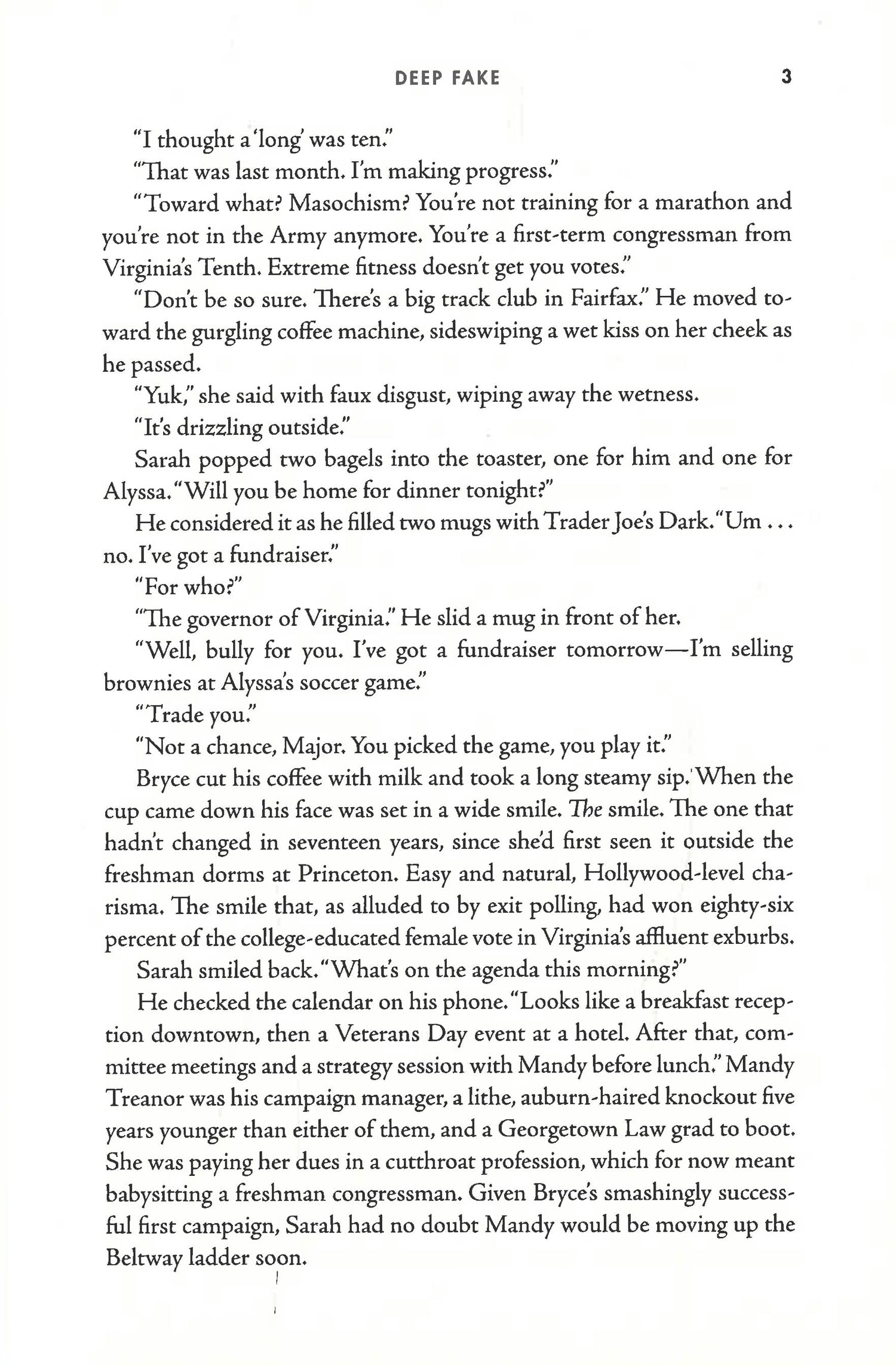 Amid the whirlwind, Sarah senses something amiss. Since the attack, Bryce has been forgetful and acting strangely. Could it be the stress? she wonders. Might the recent explosion have aggravated his combat trauma? For the first time ever, she finds herself doubting a man she has always trusted. Confessing her fears to her closest friend, together they quietly search for answers. What they uncover is stunning: the man who might soon be president has a deeply held secret. A secret that will likely destroy Sarah’s life―and certainly lead the nation to ruin.