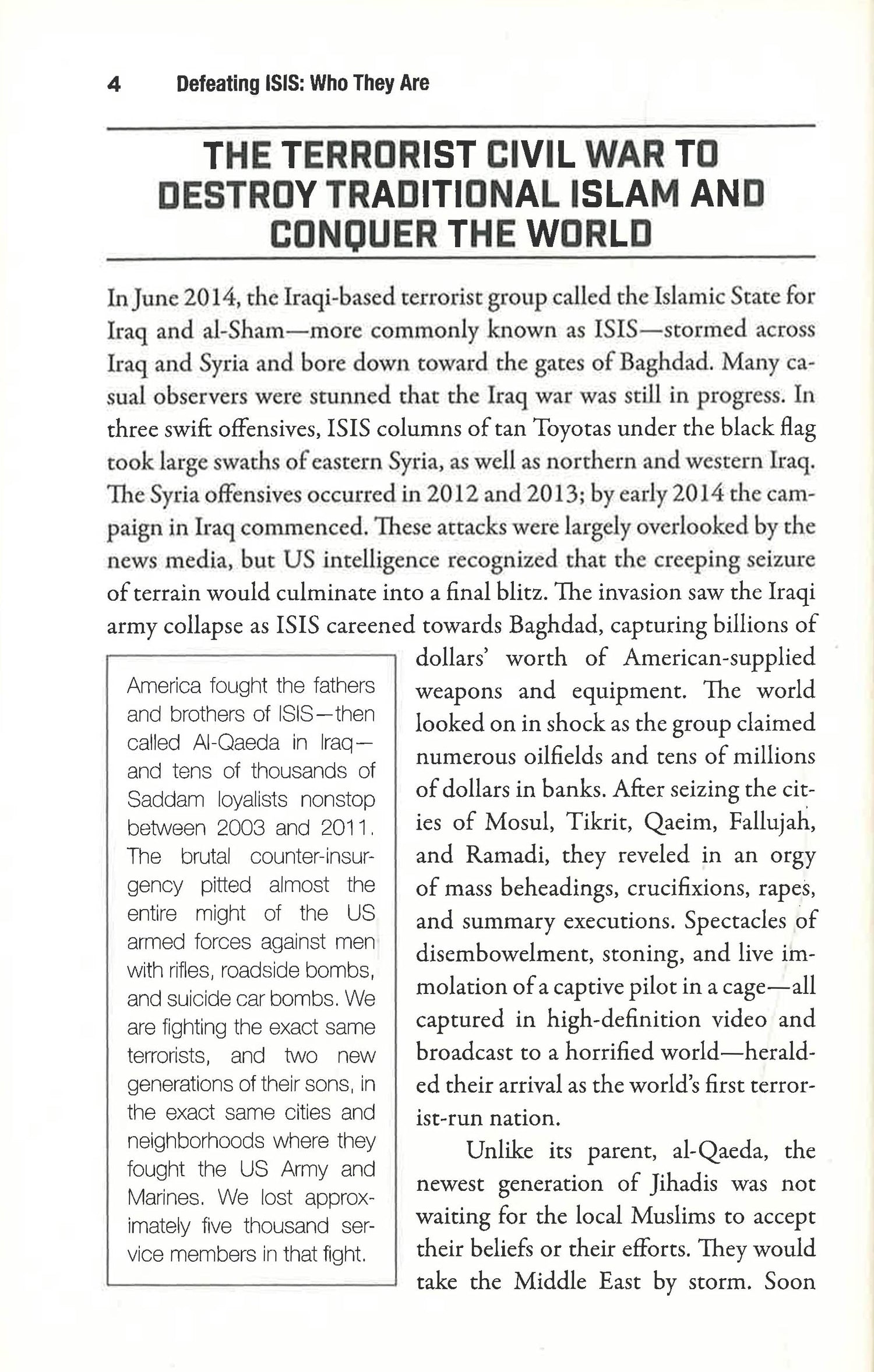 This reference shows how to understand the history and tactics of the global terror group ISIS and how to use that knowledge to defeat it. ISIS the Islamic State of Iraq and Syria has taken on the mantle of being the single most dangerous terrorist threat to global security since al-Qaeda. In Defeating ISIS, internationally renowned intelligence veteran and counter-terrorism expert Malcolm Nance, author of The Plot to Hack America and the forthcoming Hacking ISIS, gives an insider's view to explain the origins of this occult group, its violent propaganda, and how it spreads its ideology throughout the Middle East and to disaffected youth deep in the heart of the Western world. Most importantly, Defeating ISIS gives an amply illustrated, step-by-step analysis of the street-level tactics the group has employed in assaults against fortified targets, in urban combat, and during terrorist operations such as those in Paris during the November 13 attacks. As much as ISIS is a threat to Western targets and regional stability in the Middle East, Nance describes not only its true danger as a heretical death cult that seeks to wrest control of Islam through young ideologues and redefine Islam as a fight to the death against all comers, but also how to defeat it. Defeating ISIS is the first highly detailed and fully illustrated look into the organization by one of the world's foremost authorities in counter-terrorism.