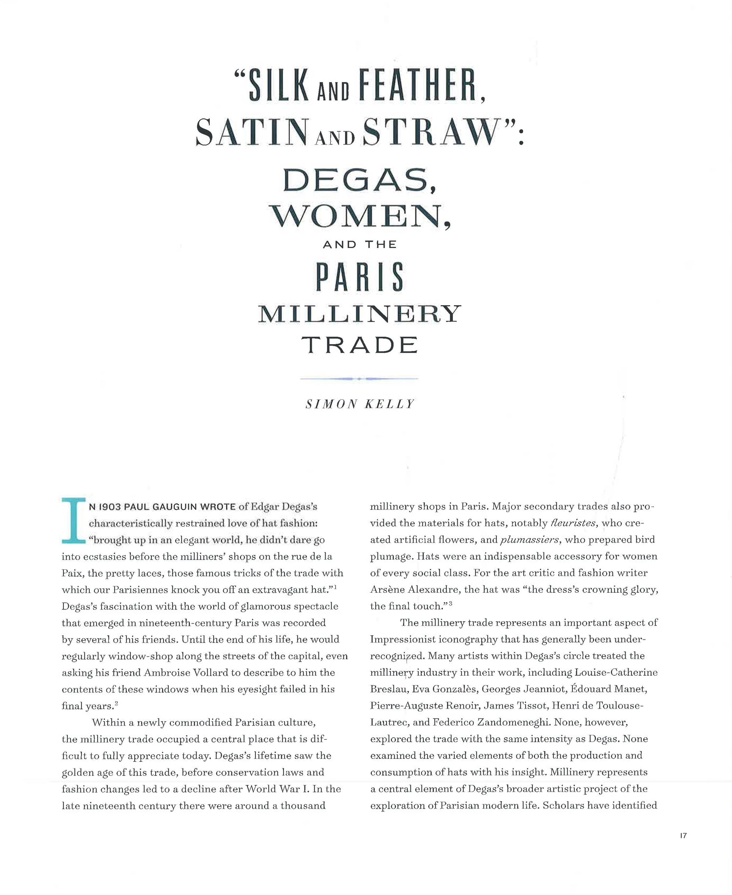 Filled with beautiful works by Edgar Degas, Mary Cassatt, and other Impressionist painters, this richly illustrated book showcases artistic portrayals of France’s millinery trade during the Belle Époque. Filled with beautiful works by Edgar Degas, Mary Cassatt, and other Impressionist painters, this richly illustrated book showcases artistic portrayals of France’s millinery trade during the Belle Époque. Though best known for his depictions of dancers and bathers, Edgar Degas repeatedly returned to the subject of millinery over the course of three decades. In masterpieces such as The Millinery Shop (1879–86) and The Milliners (ca. 1898), he captured scenes of milliners fashioning and women wearing elaborate, colorful hats. Featuring sumptuous paintings, pastels, and preparatory drawings by Degas, Cassatt, Manet, Renoir, and Toulouse-Lautrec, among others, this generously illustrated book surveys the millinery industry of 19th-century Paris. Peppered throughout with photographs, posters, and prints of French hats, this book includes essays that explore Degas’s particular interest in the millinery trade; the tension between modern fashion and reverence for history and the grand art-historical tradition; a chronicle of Parisian milliners from Caroline Reboux to Coco Chanel; and examples of how the millinery trade is depicted in literature. Brilliantly linking together the worlds of industry, art, and fashion, this groundbreaking book examines the fundamental role of hats and hat-makers in 19th-century culture.