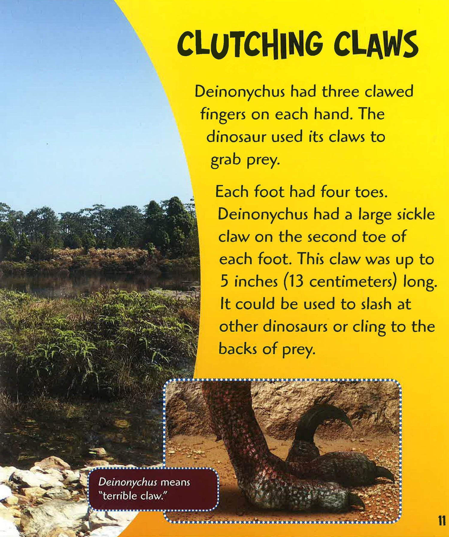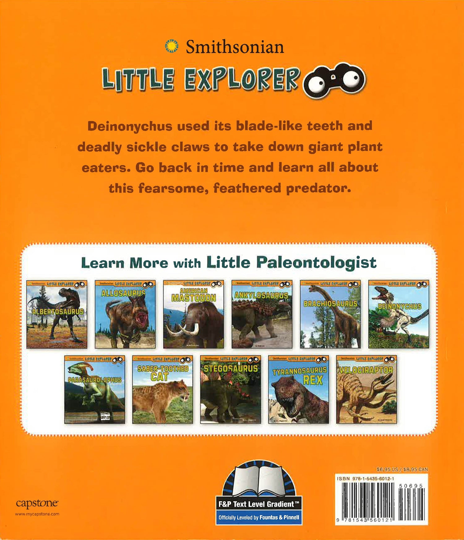 Deinonychus used blade-like teeth and deadly slckle claws to take down large dinosaurs. Readers learn about these feathered predators from engaging text and bold illustrations reviewed by Smithsonian experts.