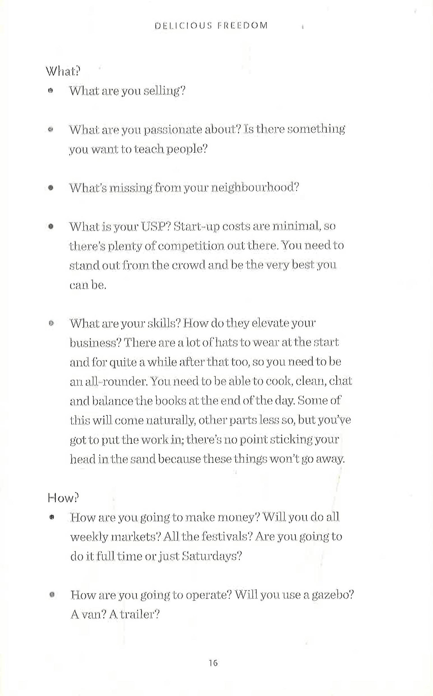 Delicious Freedom is a guide for anyone thinking about setting up their own street food business, for those who don't have the time or inclination to read a dull tome on business strategy. It is the book Miranda Roberts wishes had existed seven years ago when she started her street food adventure, and one which many people are searching for. It provides tangible advice from what you will sell to where will you do it and to whom. Throughout the book you will find stories from those who have tried and succeeded as well as those who have tried and failed, what they've all learnt and why they did it.