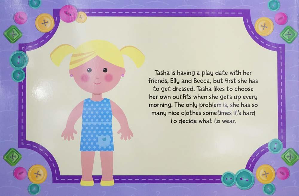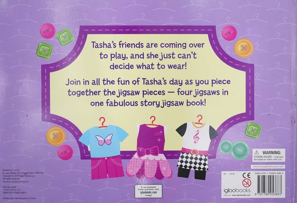 Tasha's friends are coming over to play, and she just can't decide what to wear! Join in all the fun of Tasha's day as you piece together the jigsaw pieces - four jigsaws in one fabulous story jigsaw book!