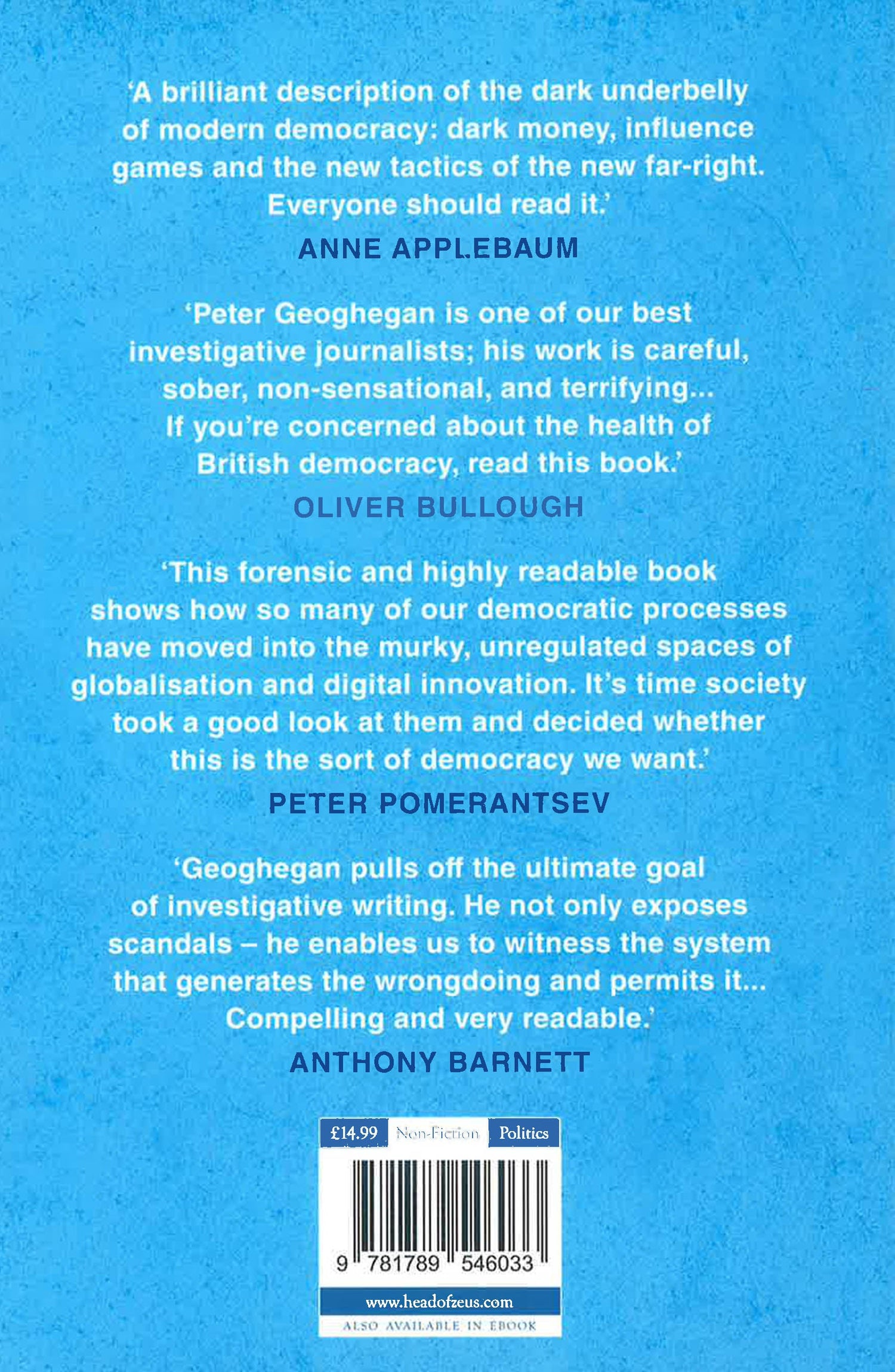 The Sunday Times bestseller. 'A compulsively readable, carefully researched account of how a malignant combination of rightwing ideology, secretive money (much of it from the US) and weaponisation of social media have shaped contemporary British (and to a limited extent, European) politics... Remarkable' Observer, Book of the Week Democracy is in crisis, and unaccountable and untraceable flows of money are helping to destroy it. This is the story of how money, vested interests and digital skulduggery are eroding trust in democracy. Antiquated electoral laws are broken with impunity, secretive lobbying is bending our politics out of shape and Silicon Valley tech giants collude in selling out democracy. Politicians lie gleefully, making wild claims that can be shared instantly with millions on social media. Peter Geoghegan is a diligent, brilliant guide through the shadowy world of dark money and digital disinformation stretching from Westminster to Washington, and far beyond. Praise for Democracy for Sale: 'Thorough, gripping and vitally important' Oliver Bullough 'A brilliant description of the dark underbelly of modern democracy. Everyone should read it' Anne Applebaum 'A compelling and very readable story of the ongoing corruption of our government and therefore ourselves' Anthony Barnett 'As urgent as it is illuminating' Fintan O'Toole 'This urgent, vital book is essential reading for anyone who wants to make sense of our politics' Carole Cadwalladr 'This forensic and highly readable book shows how so many of our democratic processes have moved into the murky, unregulated spaces of globalisation and digital innovation' Peter Pomerantsev 'A call to arms for all those who value democracy' The Herald 'Geoghegan's words are those of someone who is prepared to keep fighting to defend and revitalise what shadows of democracy still remain'Scotsman