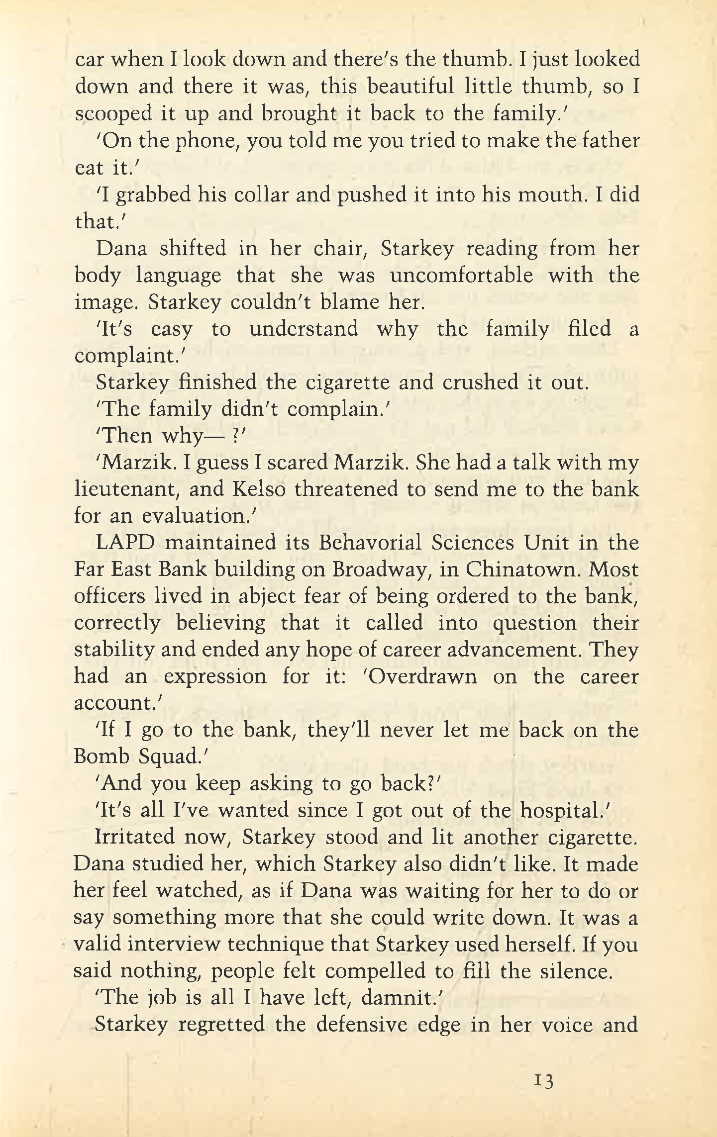 The clock is ticking for Carol Starkey, tenacious detective - and bomb survivor . . .John Michael Fowles has a natural talent: he understands explosives. He has a feel for them. It is a talent which he fully expects will take him onto the FBI's Ten Most Wanted list. Along the way he will match himself against the best: the FBI's elite team of bomb technicians and one person in particular - Carol Starkey, Detective in the LAPD Criminal Conspiracy Section. Starkey died for two minutes and forty seconds after being blown up by one of his bombs, and Fowles dearly wants her dead again. As the FBI attempt to find the link behind a series of bomb explosions that have been designed to kill their technicians, Special Agent Ben Williams stumbles on the bomber's secret: his desire to kill Starkey. If Williams can keep this from Starkey he can set a trap and catch the bomber. A trap that uses Carol Starkey as bait.