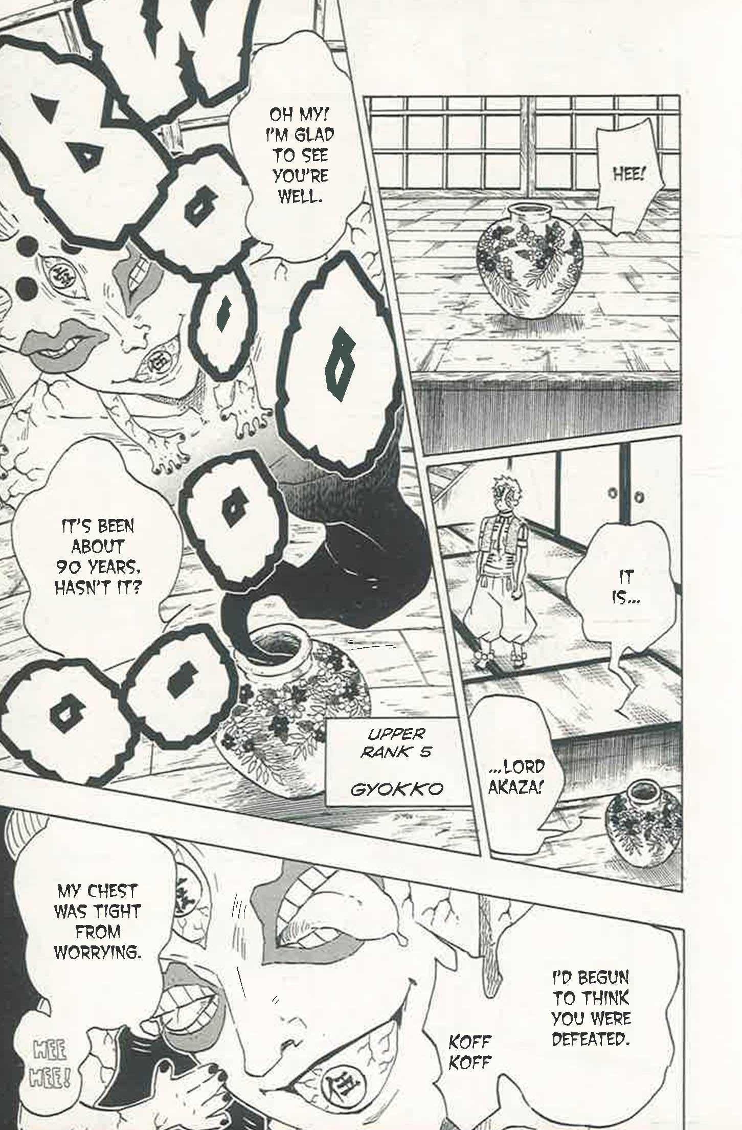 For the first time in over 100 years, the upper ranks of Muzan Kibutsuji’s Twelve Kizuki are not full. Angered, Muzan dispatches the survivors on another mission. Elsewhere, Tanjiro journeys to a village of swordsmiths and has to explain how his sword was so badly damaged to Haganezuka, the smith who made it. While Tanjiro waits for his sword to be repaired, enemies close in…