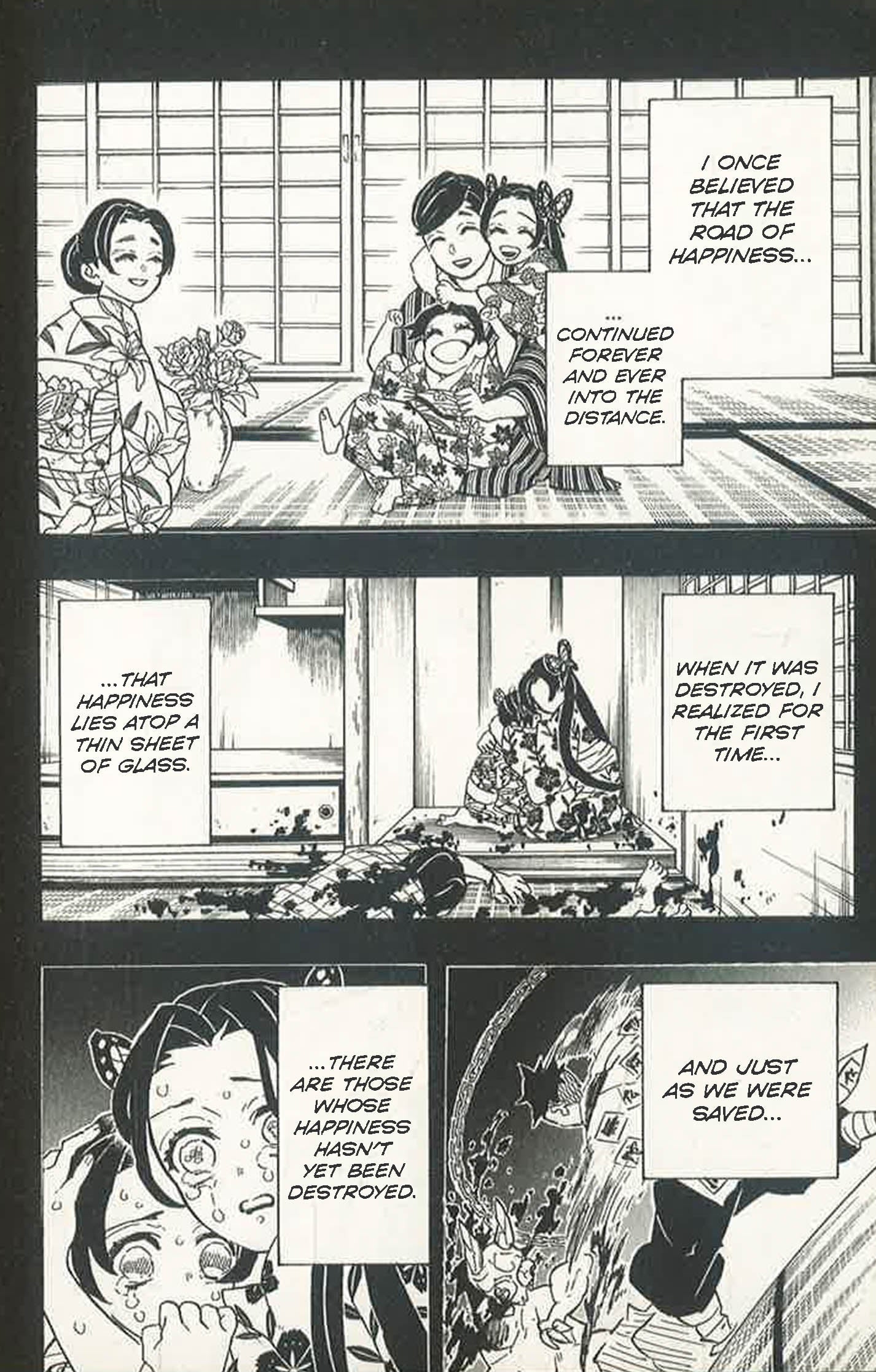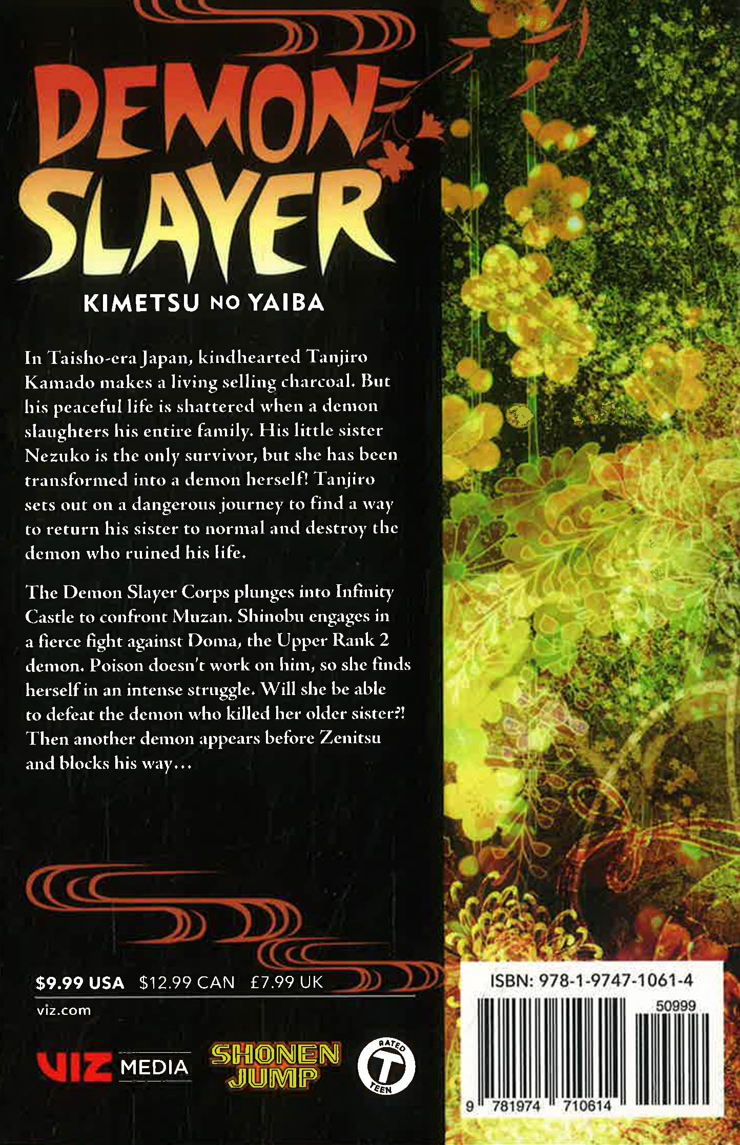 The Demon Slayer Corps plunges into Infinity Castle to confront Muzan. Shinobu engages in a fierce fight against Doma, the Upper Rank 2 demon. Poison doesn’t work on him, so she finds herself in an intense struggle. Will she be able to defeat the demon who killed her older sister?! Then another demon appears before Zenitsu and blocks his way…
