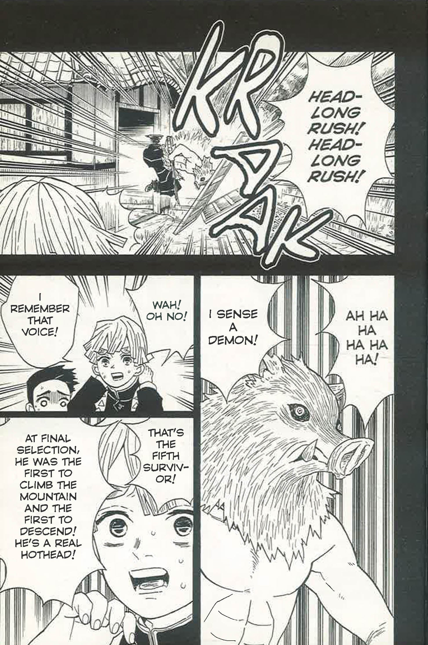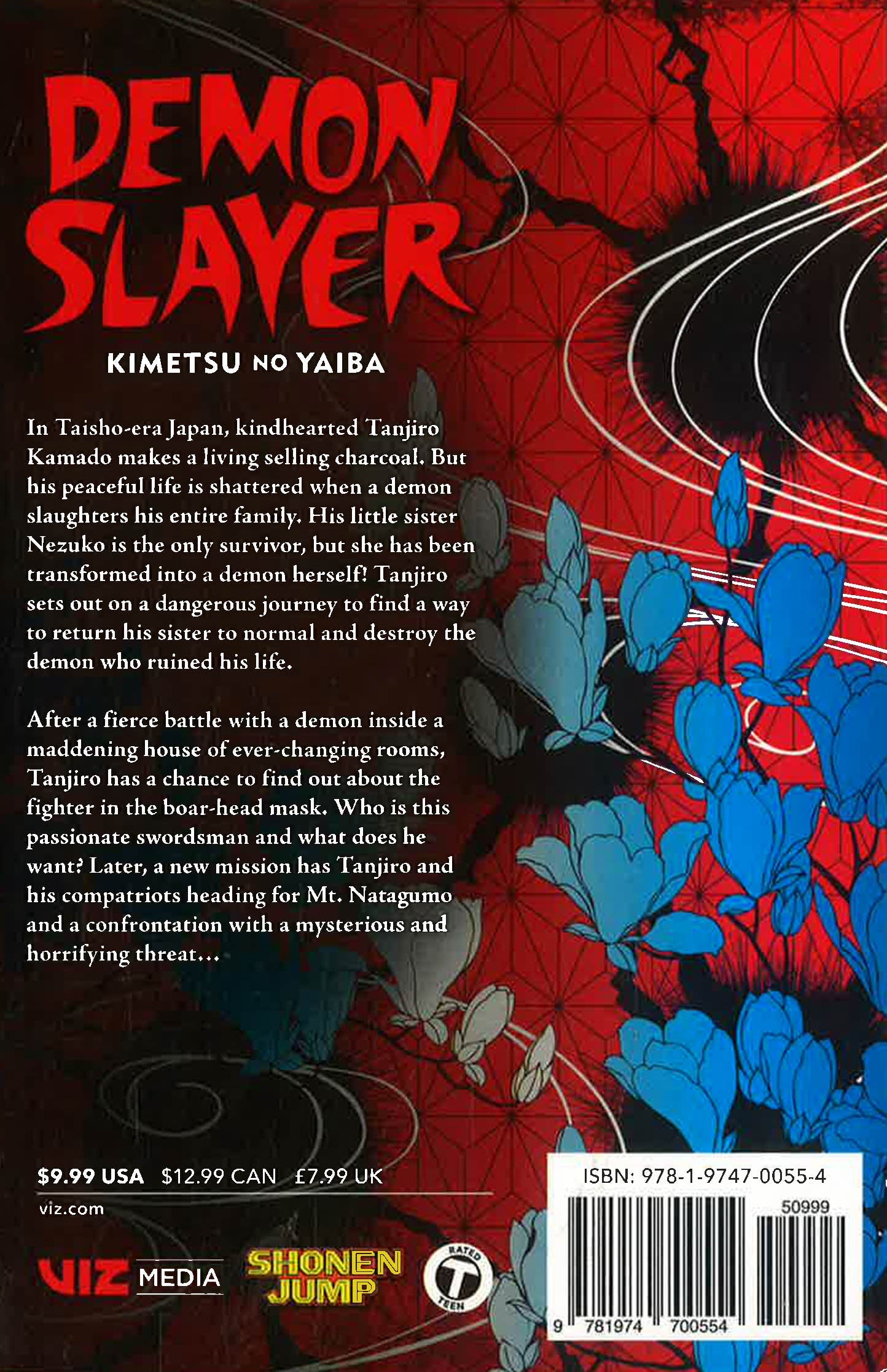 After a fierce battle with a demon inside a maddening house of ever-changing rooms, Tanjiro has a chance to find out about the fighter in the boar-head mask. Who is this passionate swordsman and what does he want? Later, a new mission has Tanjiro and his compatriots heading for Mt. Natagumo and a confrontation with a mysterious and horrifying threat…