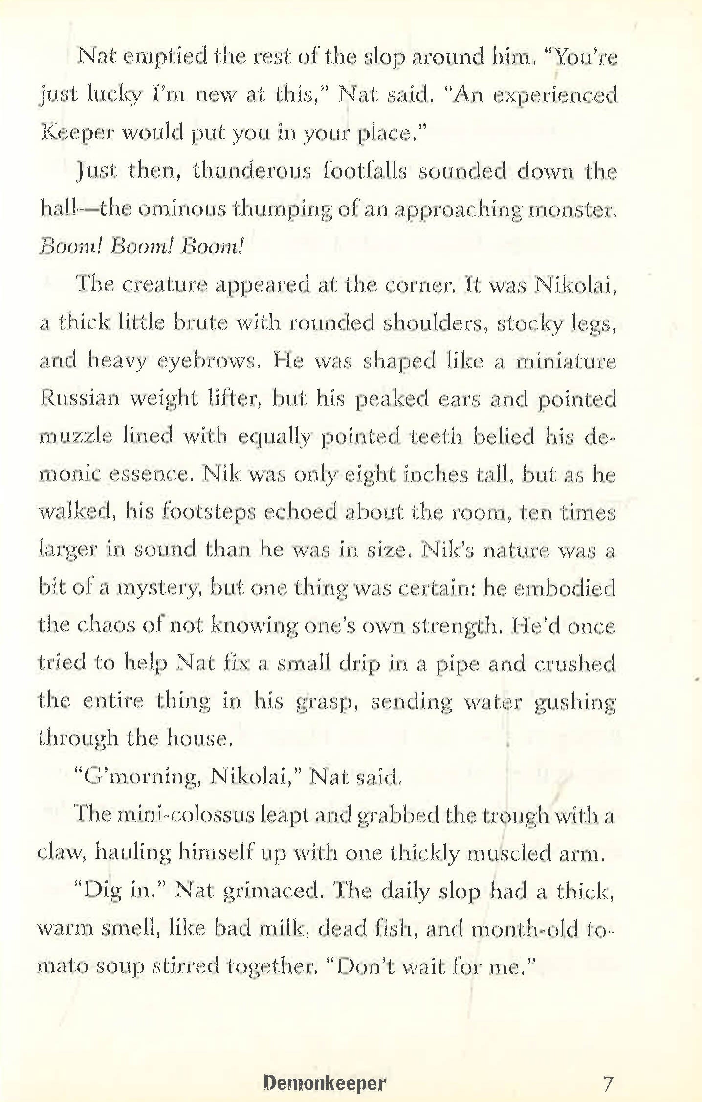 Ever since his mentor, the original Demonkeeper, mysteriously disappeared, Nat has been in charge of the demons that live in his house. Most of them are just nuisances, but the Beast who lives in the basement is very dangerous. When Nat goes out one night, a clueless burglar breaks into the house and unwittingly sets the Beast free. Meanwhile, a vicious villain, the Thin Man, wants to use the Beast for his own evil purposes. Can Nat defeat the Thin Man and return the Beast to the basement without any major casualties?