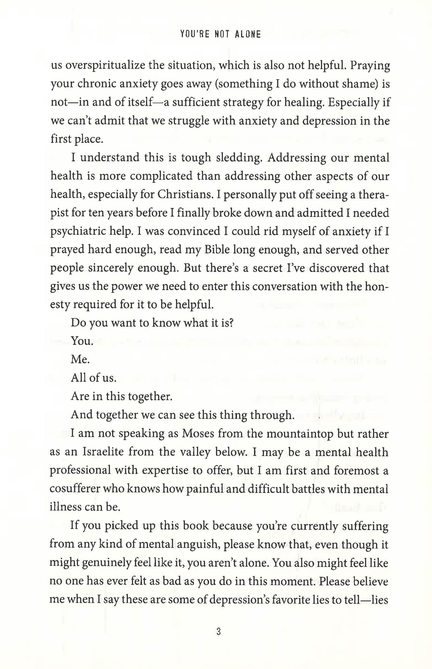 Mental illness loves to tell lies. One of those lies is that you really should be able to manage what you're struggling with. Pastor and psychotherapist Ryan Casey Waller says no. Mental health issues are not a symptom of a spiritual failing or insufficient faith; rather, suffering is the very thing our Savior seeks to heal as he leads us toward restoration. And yet, as Waller has experienced personally, the battle can be lonely and discouraging. But it doesn't have to be.