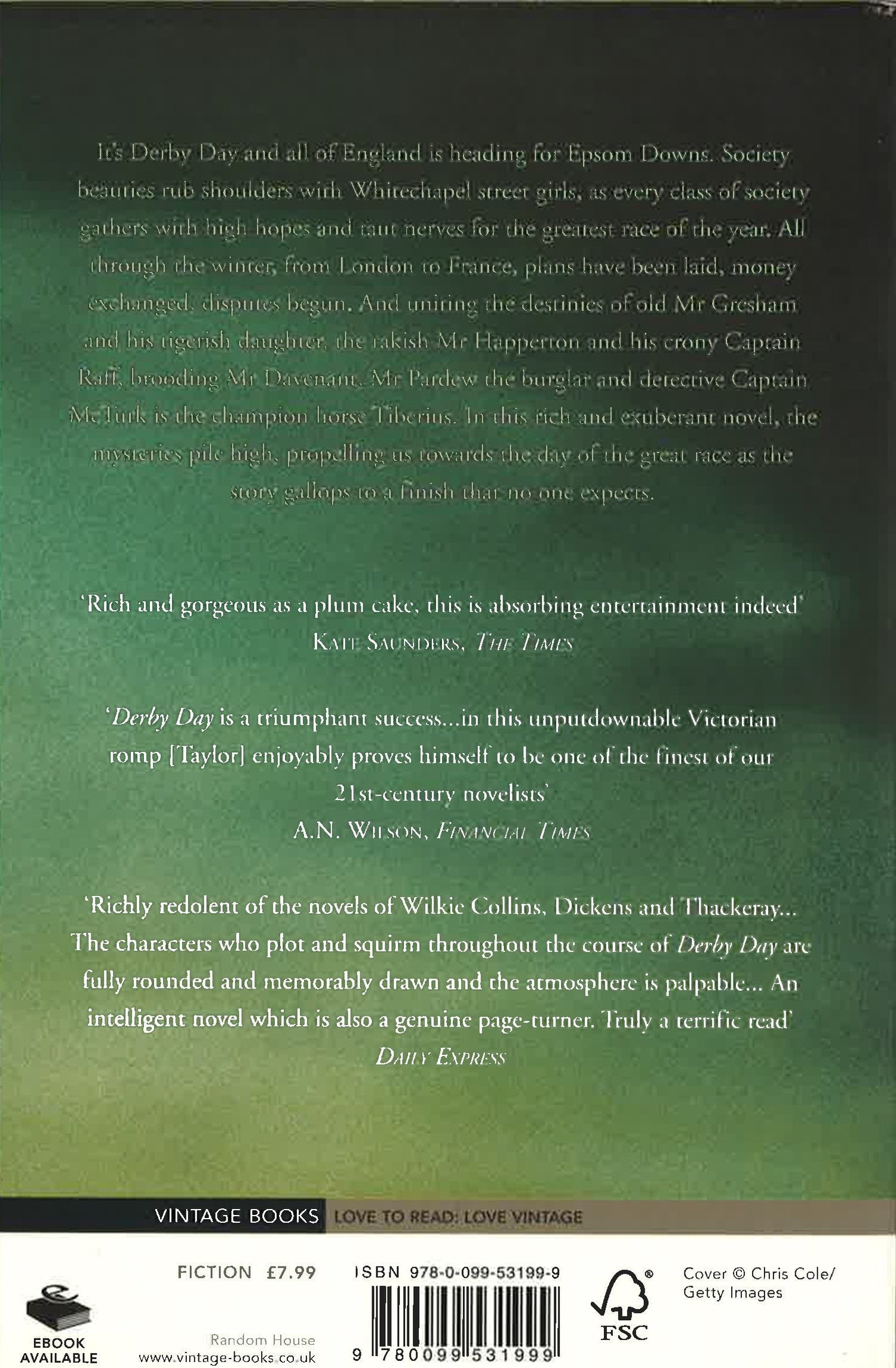 It's Derby Day and all of England is heading for the Epsom Downs. Society beauties rub shoulders with Whitechapel street girls, as every class of society gathers with high hopes and taut nerves for the greatest race of the year.All through winter, from London to France, plans have been laid, money exchanged, disputes begun. And uniting the destinies of old Mr Gresham and his tigerish daughter, the rakish Mr Happerton and his crony Captain Raff, brooding Mr Davenant, Mr Pardew the burglar and detective Captain McTurk is the champion horse Tiberius.In this rich and exuberant novel, rife with the idioms of Victorian England, the mysteries pile high, propelling us towards the day of the great race, and we wait with bated breath as the story gallops to a finish that no one expects.Longlisted for the Man Booker Prize 2011.