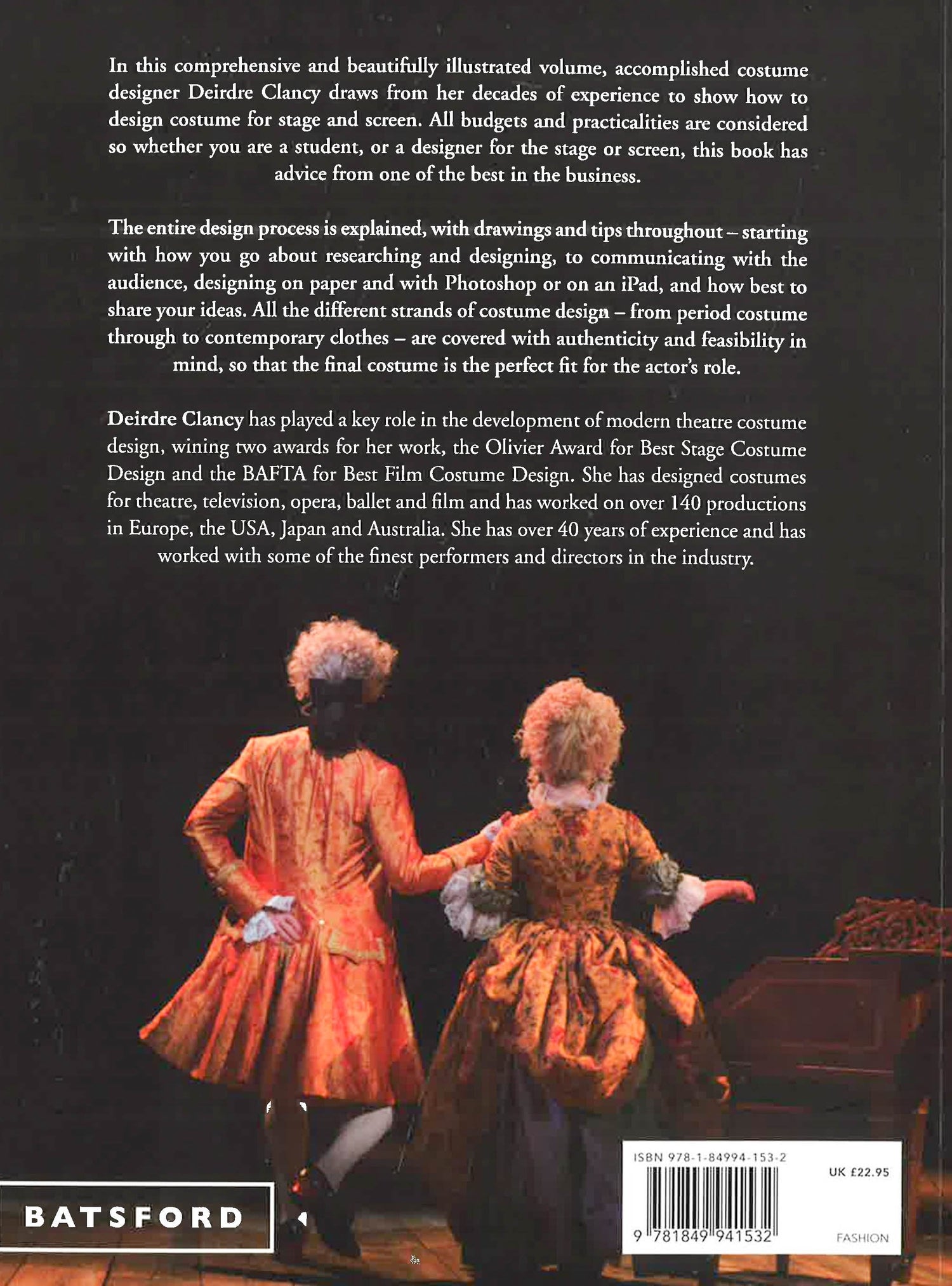 "She is the most wonderfully inventive and brilliantly talented designer" Dame Judi Dench on Clancy. Deirdre Clancy is one of the most experienced and accomplished costume designers in the business. In this book, she gives her inside knowledge of designing for stage and screen, which includes television, film, theatre and opera. She includes a brief illustrated history of costume design - from the Greeks to Lady Gaga - an invaluable guide for students and current designers. Part Two takes the reader through the design process: how you go about doing it, and the different strands of costume design - from contemporary clothes through to period costume, how to communicate with the audience, designing on paper and with Photoshop or on an iPad and how to share and communicate your ideas and well as mood boards and collages for inspiration. Part Three is about the world of costume design - what it involves and how to get into the field, who does what and the differences between working for stage and screen productions. Clancy advises on budgets and improvisation and covers all the practicalities and behind-the-scenes tips. Part Four looks at period costume from the Dark Ages up to the twentieth century, encompassing authenticity and feasibility. Finally, Part Five looks at individual case studies in depth, including opera and Shakespeare productions.Packed with great drawings and case studies, this is an essential book for any student or professional costume designer looking for additional inside advice. Whether you are a designer for the stage or screen, this book has something new for you with advice from one of the best in the business.