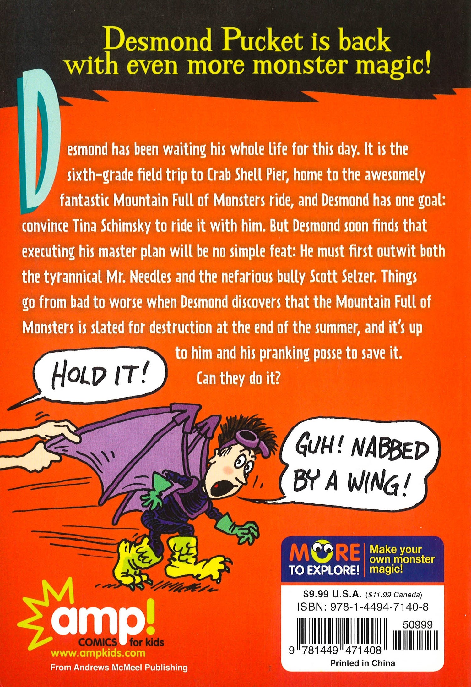 The next book in the hot new series about a kid who just can't stop making monster magic! Desmond Pucket is back, and this time he has a posse. Desmond has been waiting his whole life for this day. It is the sixth-grade field trip to Crab Shell Pier, home to the world's most awesomely fantastic ride, and Desmond has one goal: convince Tina Schimsky to ride it with him. But once inside the amusement park, Desmond finds that executing his master plan will be no simple feat. Accompanied by his best friend Ricky, Desmond must outwit both the tyrannical Mr. Needles and his nefarious mortal enemy Scott Selzer, along with anyone---or anything---else in the way. The race is on to reach Mountain Full of Monsters and win the girl of his dreams . . . Can Desmond do it?