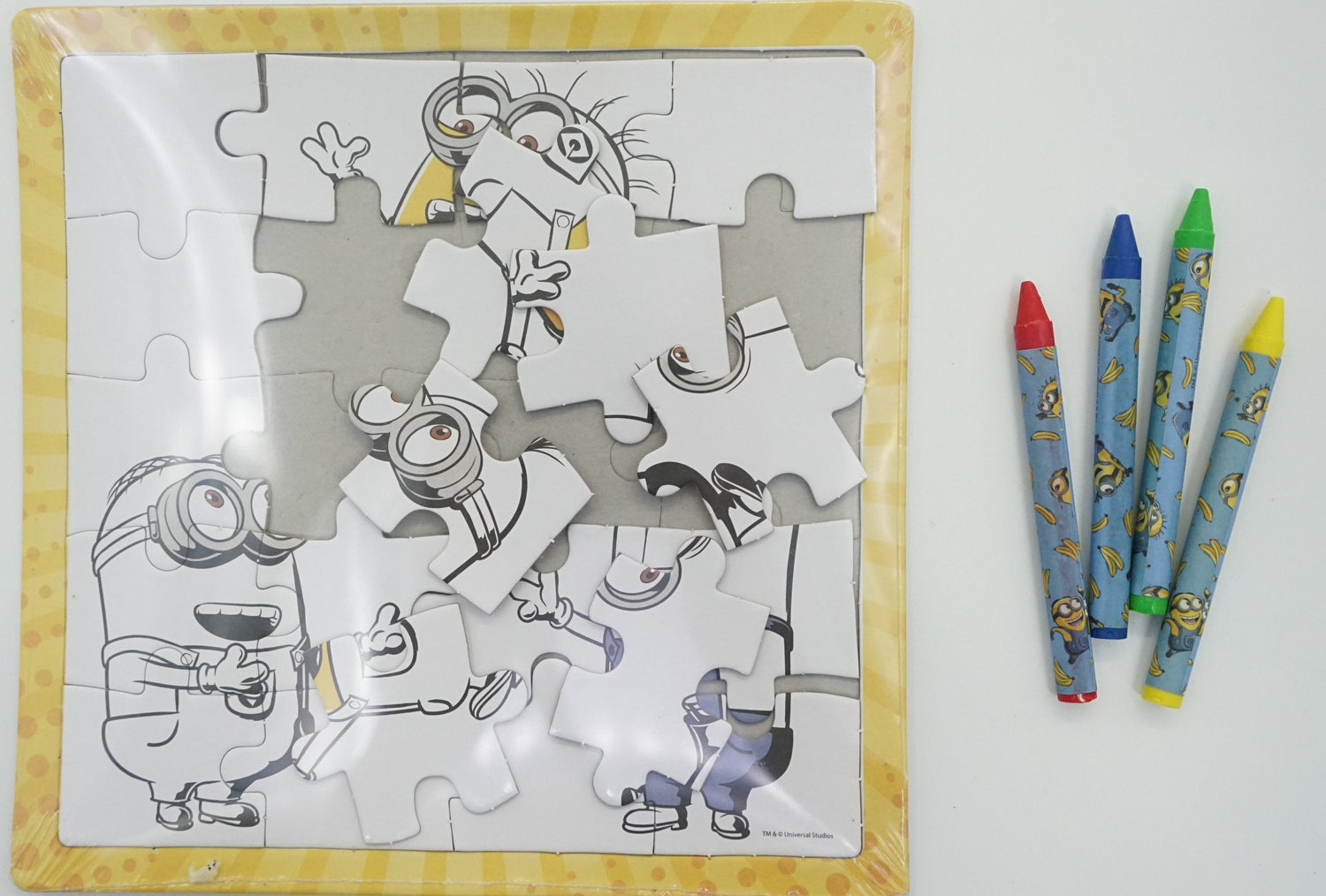 Contains a puzzle to color, a color template and 4 wax crayons.