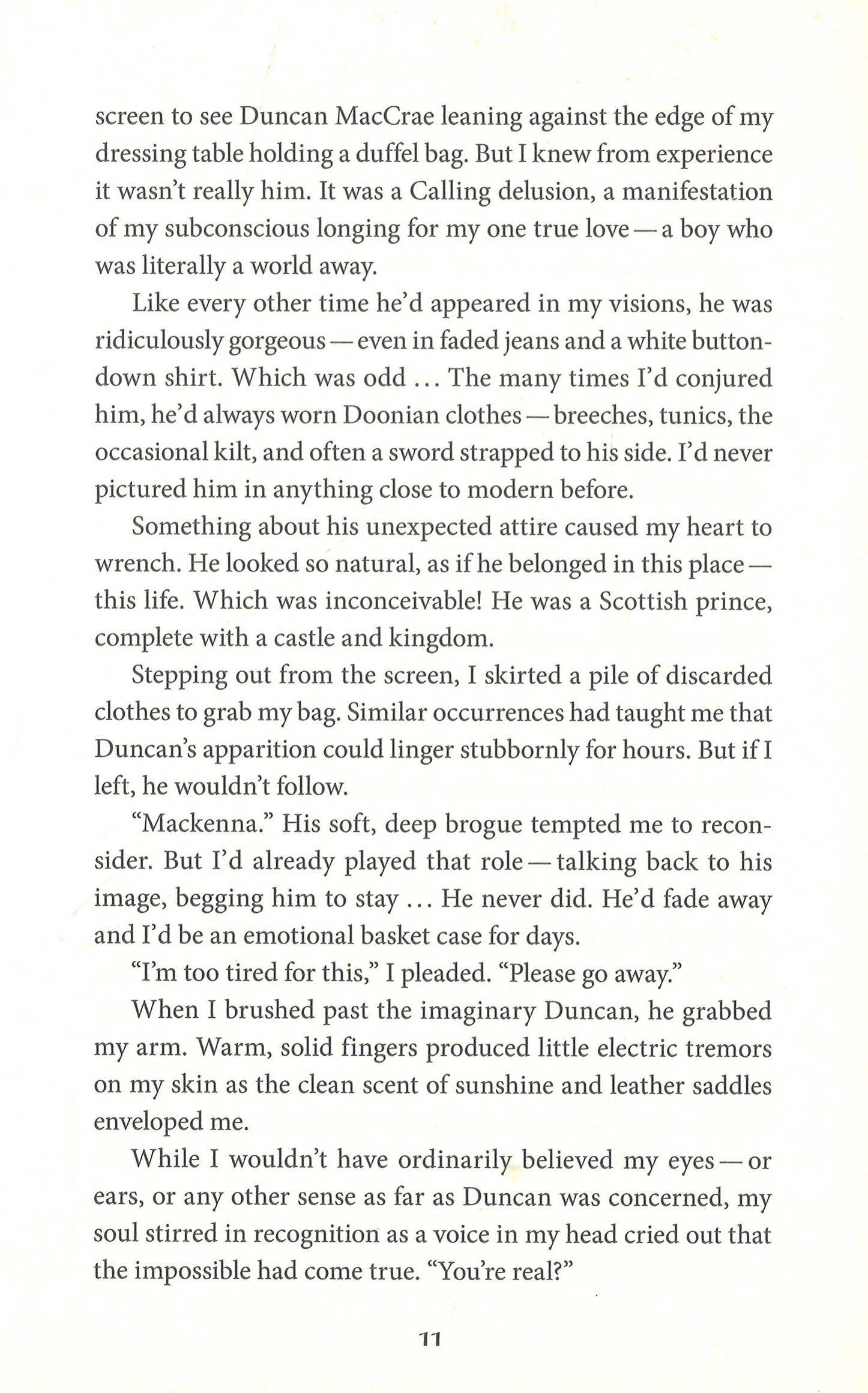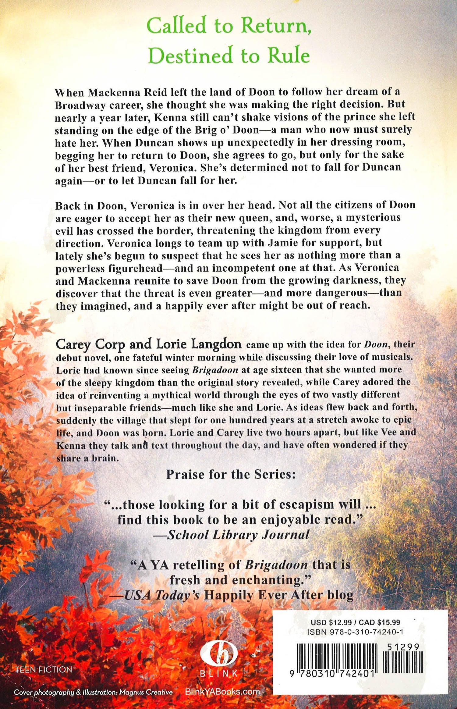 In this sequel to Doon, Kenna Reid realizes she made a horrible mistake—choosing to follow her dreams of Broadway instead of staying in the enchanted land of Doon. To make everything worse, she's received her Calling—proof she and Duncan are each other's one true love—and it's pure torment, especially when visions of the very alluring Doonish prince appear right before she goes on stage. So when Duncan tells Kenna that Doon needs her, she doesn't have to think twice. But even if Kenna can defeat the evil threatening to eliminate Doon, her happily ever after may still be in peril.