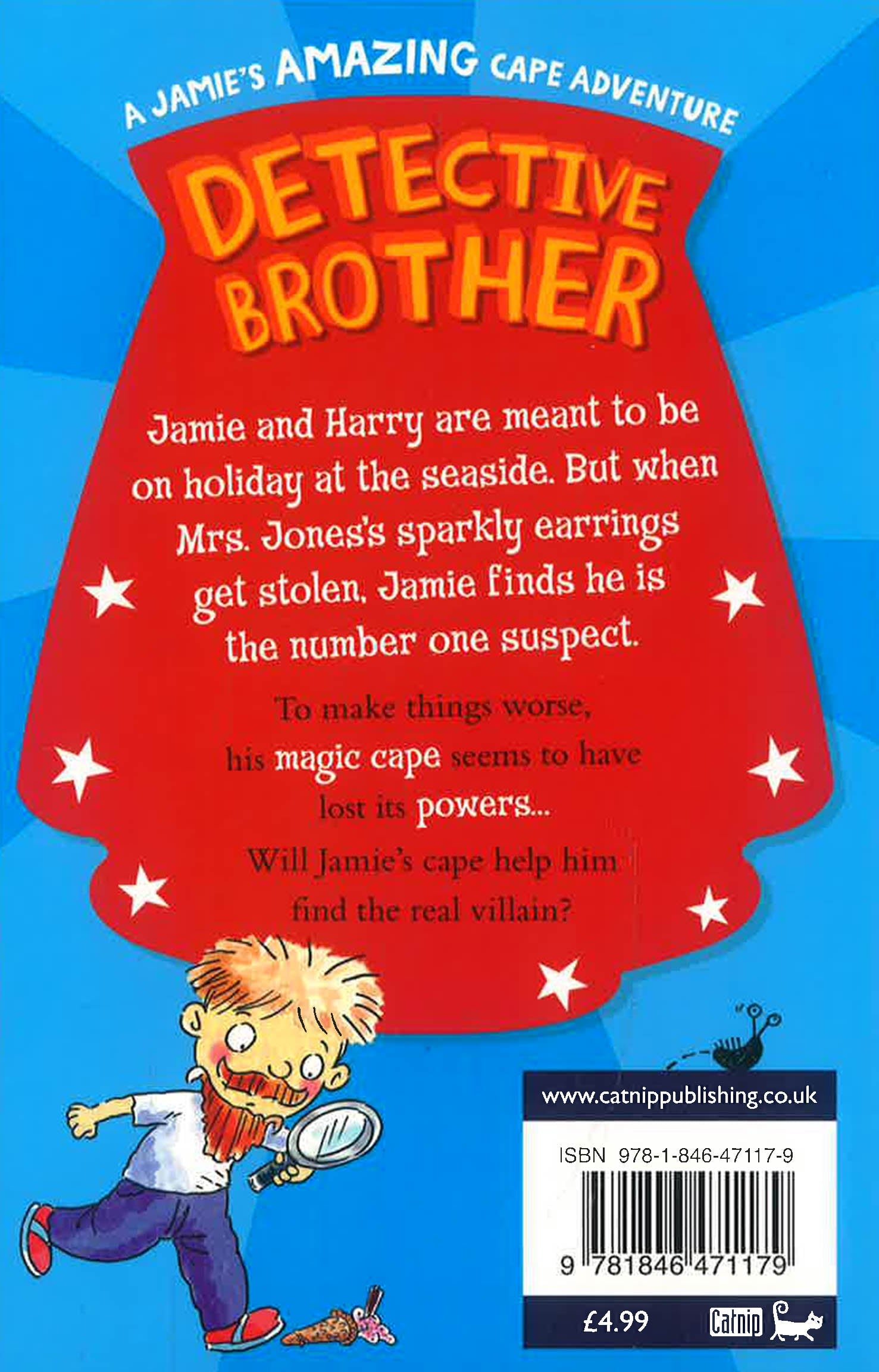 Jamie, Reema and Harry are back in a new adventure. When Aunt Nora takes them to the seaside for a relaxing holiday they find themselves in the middle of a mysterious theft, and Jamie is the number one suspect. Can his magic cape help Jamie find the real criminal.