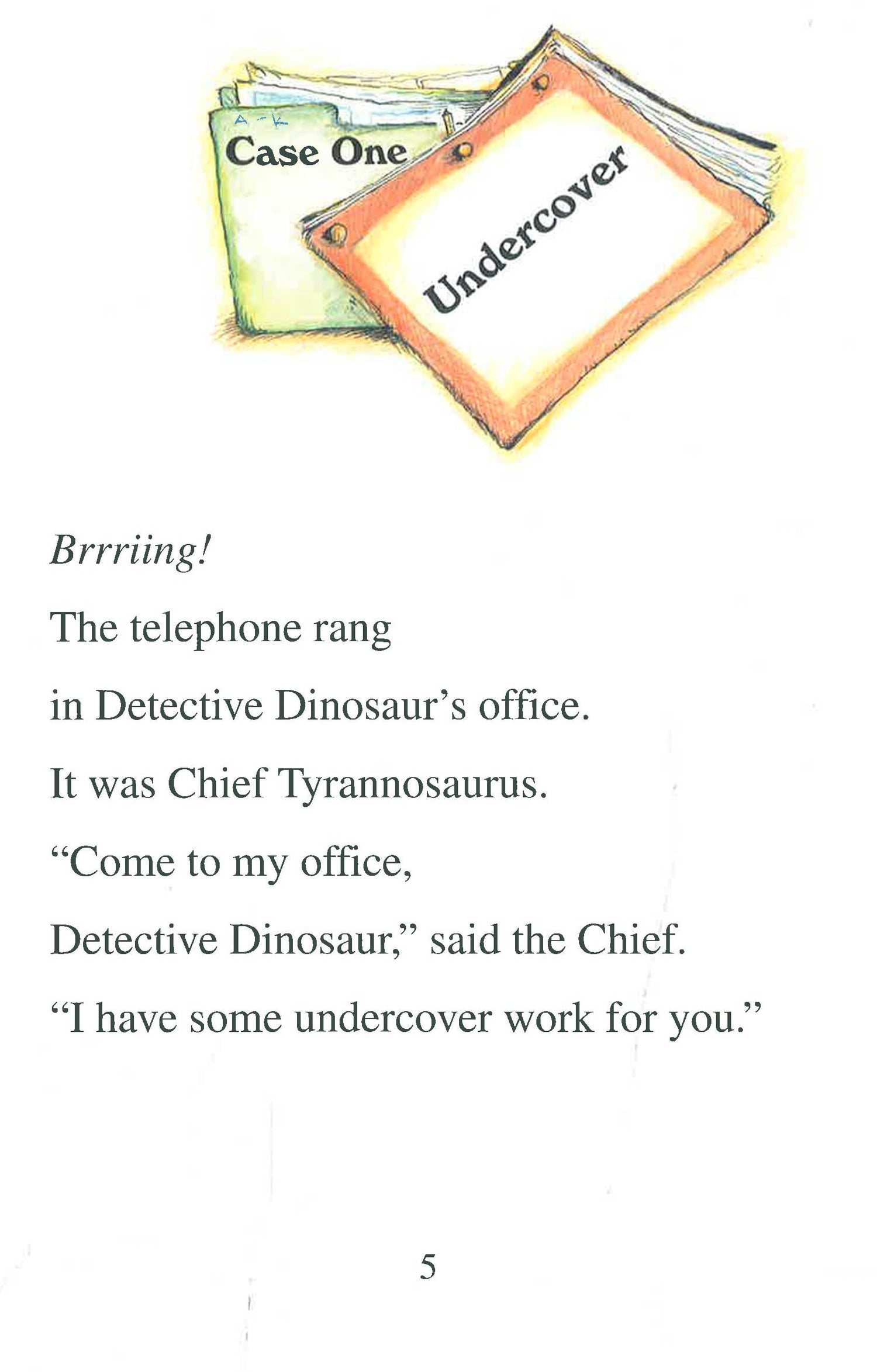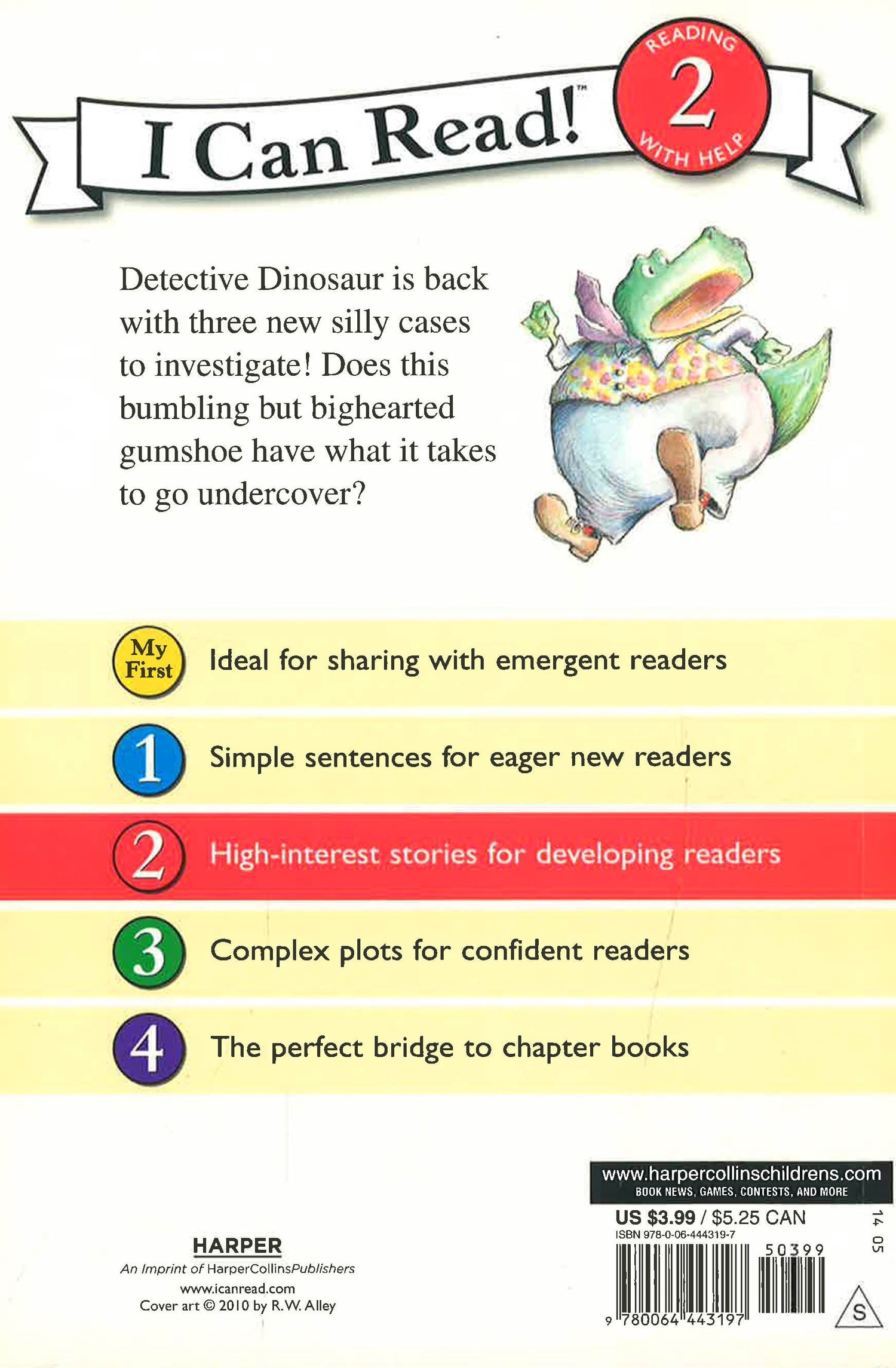 The bumbling but bighearted star of Detective Dinosaur and Detective Dinosaur Lost and Found is back with three new silly cases to investigate! This third book of comic misadventures by James Skofield, brought to life as only the inspired illustrations of R. W. Alley can do, is sure to please mystery lovers and dinosaur fans alike. When a detective goes undercover, it usually means they are in disguise, right? Not if it's Detective Dinosaur! How this charmingly clueless gumshoe goes undercover--in the most surprising ways--is the kind of irresistible goofiness beginning readers love.